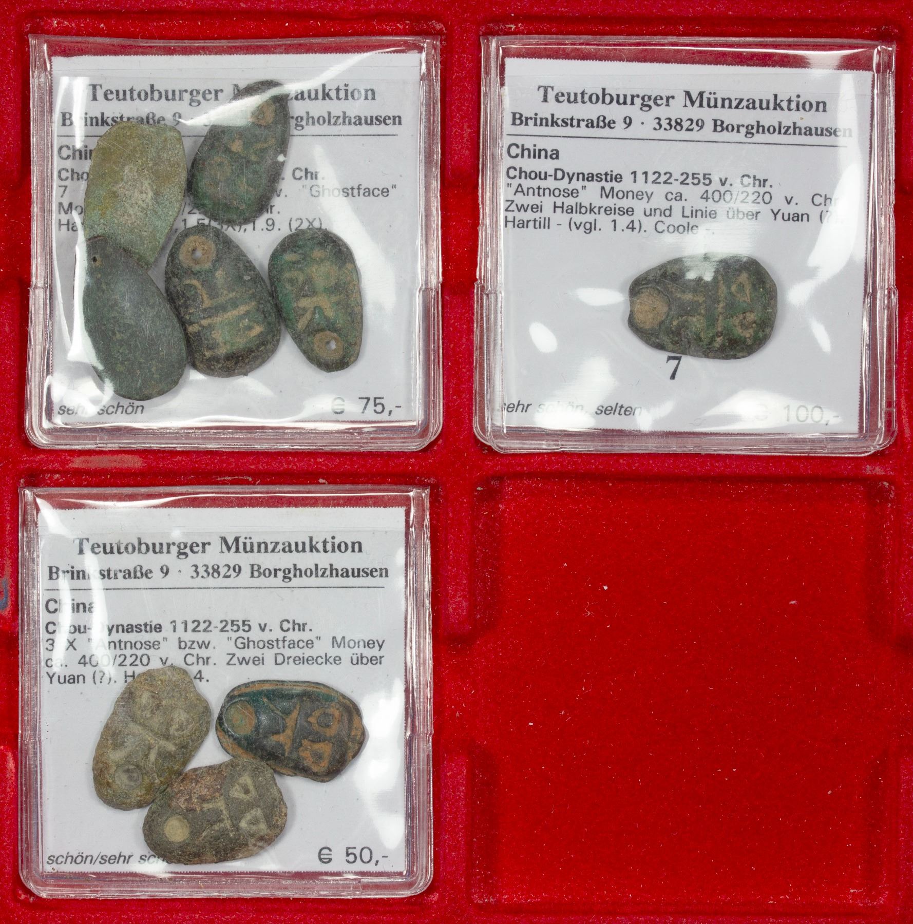 WARRING STATES: LOT of 9 coins, State of Chu, 400-220 BC, AE ant nose money, group of different variants of H-1,4, an interesting study lot, retail value $150, lot of 9 coins, ex Dr. Dirk Löer Collection, ex Teutoburger Münzauktion lots.