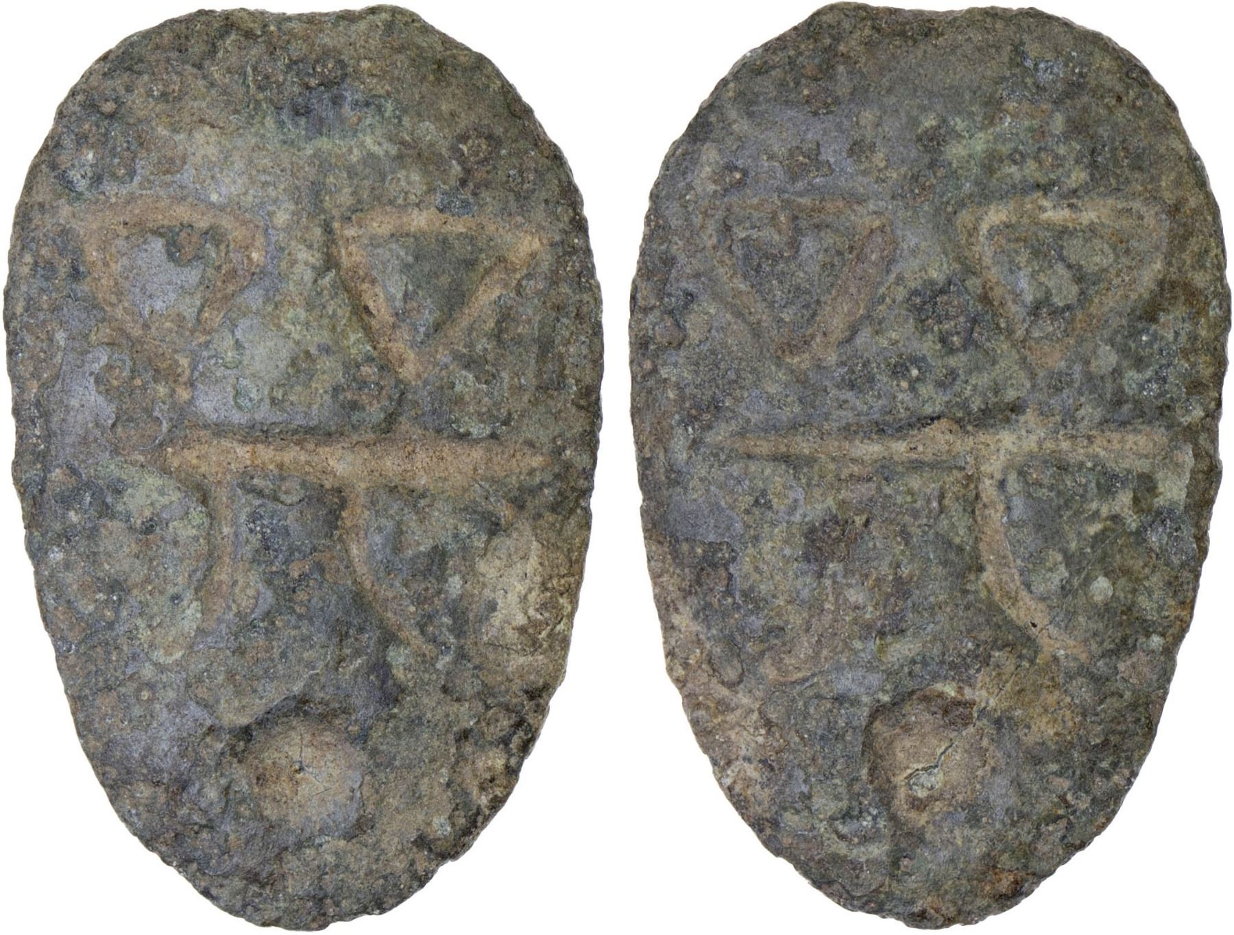 WARRING STATES: State of Chu, 400-200 BC, AE ant nose money (2.41g), H-1.8, also known as gui lian qian (ghost face money), jin in archaic script either side, light porosity, VF, ex Dr. Dirk Löer Collection.