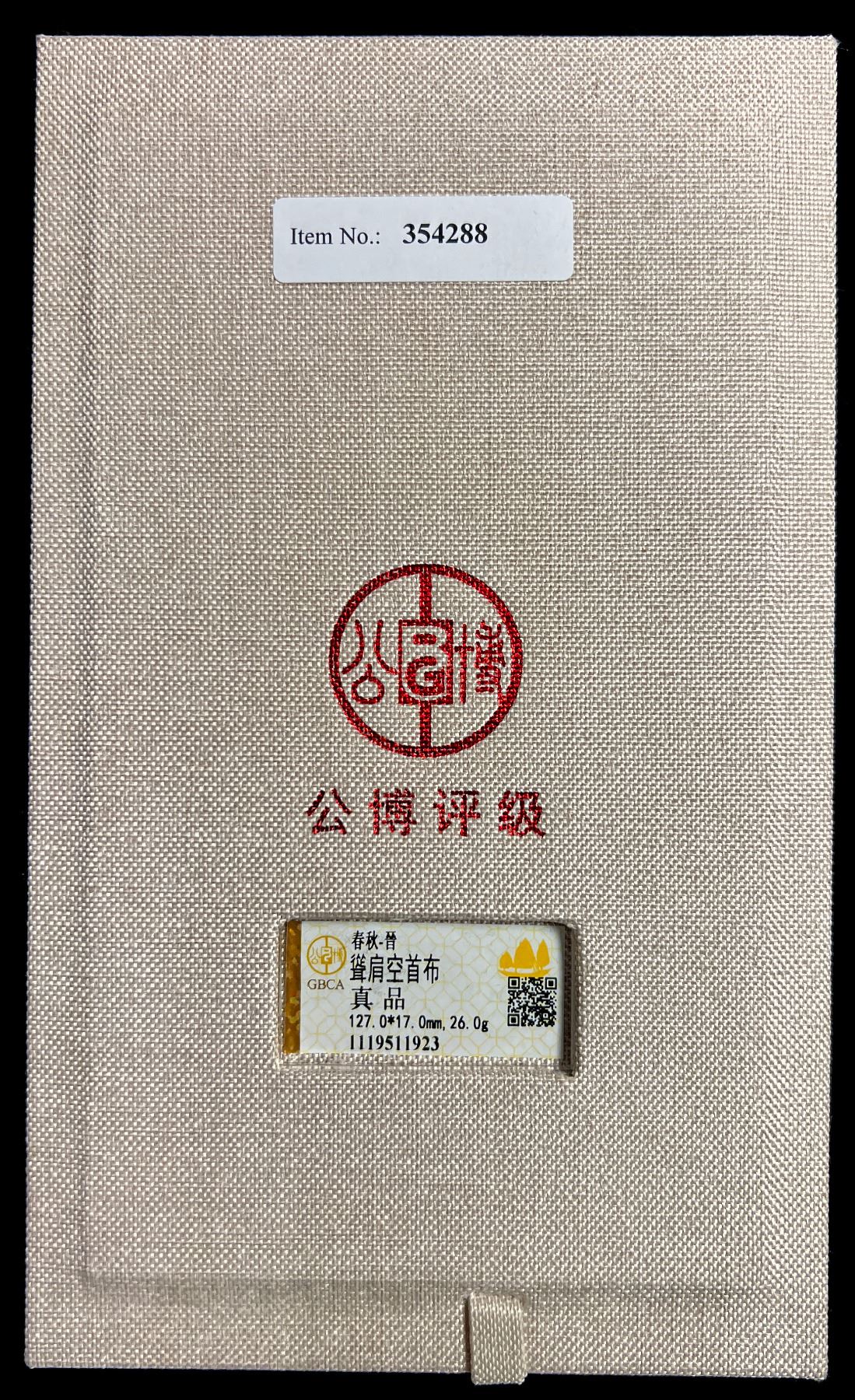 WARRING STATES: State of Jin, 500-400 BC, AE spade money (26g), H-2.182, hollow-handled pointed shoulder type, uninscribed variety, one tip chipped, a superb example with attractive patina! graded 'genuine' by GBCA Grading Company, VF, ex Dr. Dirk Löer Collection.