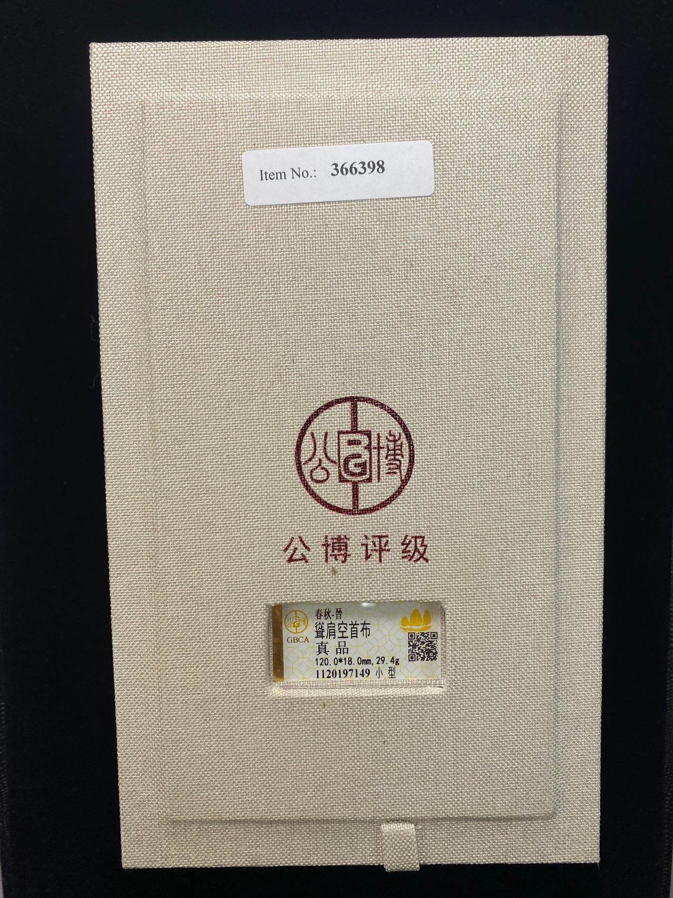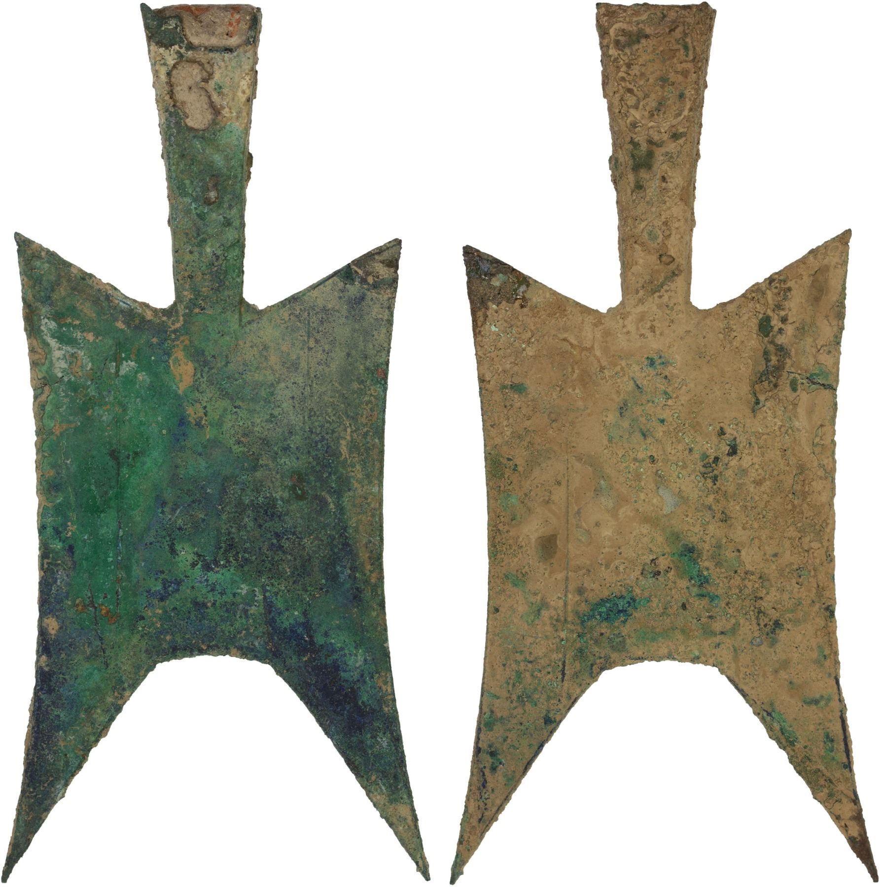 WARRING STATES: State of Jin, 500-400 BC, AE spade money (29.4g), H-2.182, hollow-handled pointed-shoulder type, uninscribed variety, graded 'Genuine' by GBCA Grading Company, VF, ex Ilse & Rolf Braun Collection. Spades of this type are found in Northeast Henan and Shanxi, the territory of the Duchy of Jin, later to become Zhao. They are held to be somewhat later in date than the square shouldered spades. Their shape seems to be designed for ease of tying together in bundles, rather than deriving from any particular agricultural instrument.