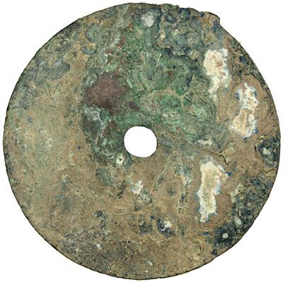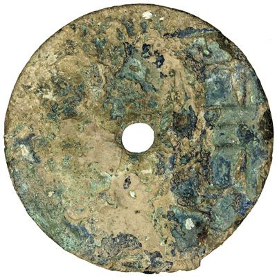 WARRING STATES: State of Liang, 350-220 BC, AE cash (10.32g), H-6.3, archaic yuan at right, with heavy encrustation, Fine, ex Zhao Quanzhi Collection.