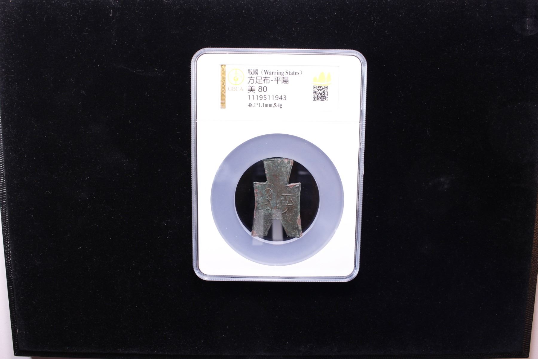 WARRING STATES: State of Liang, 350-250 BC, AE spade money (5.4g), H-3.358, flat-handle square-foot spade type, ping yang in archaic script, graded 80 by GBCA Grading Company, VF. Possibly issued by the Zhao State.