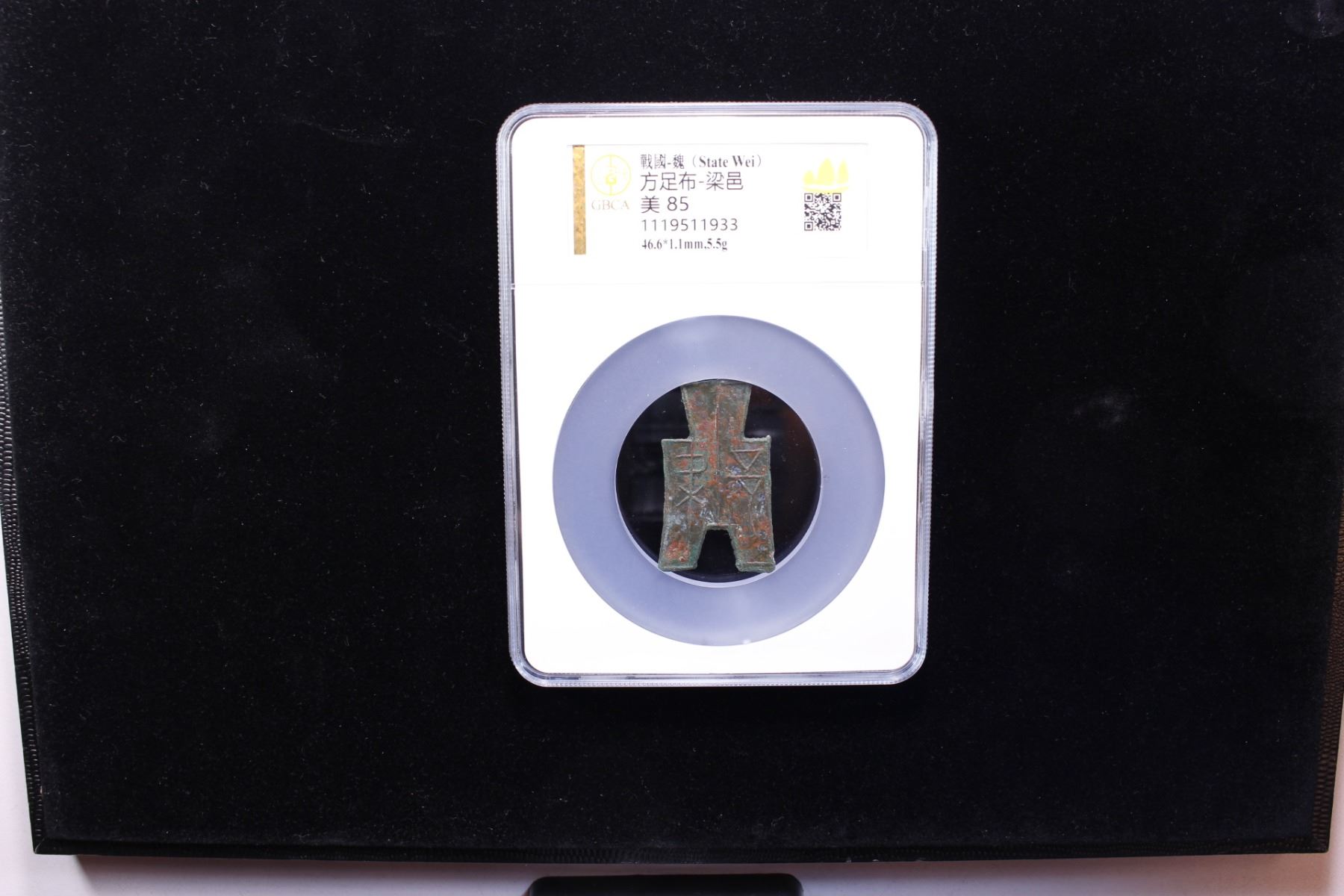 WARRING STATES: State of Liang, 350-250 BC, AE spade money (5.5g), H-3.227, flat-handle square-foot spade type, liang in archaic script, graded 85 by GBCA Grading Company, VF-XF.