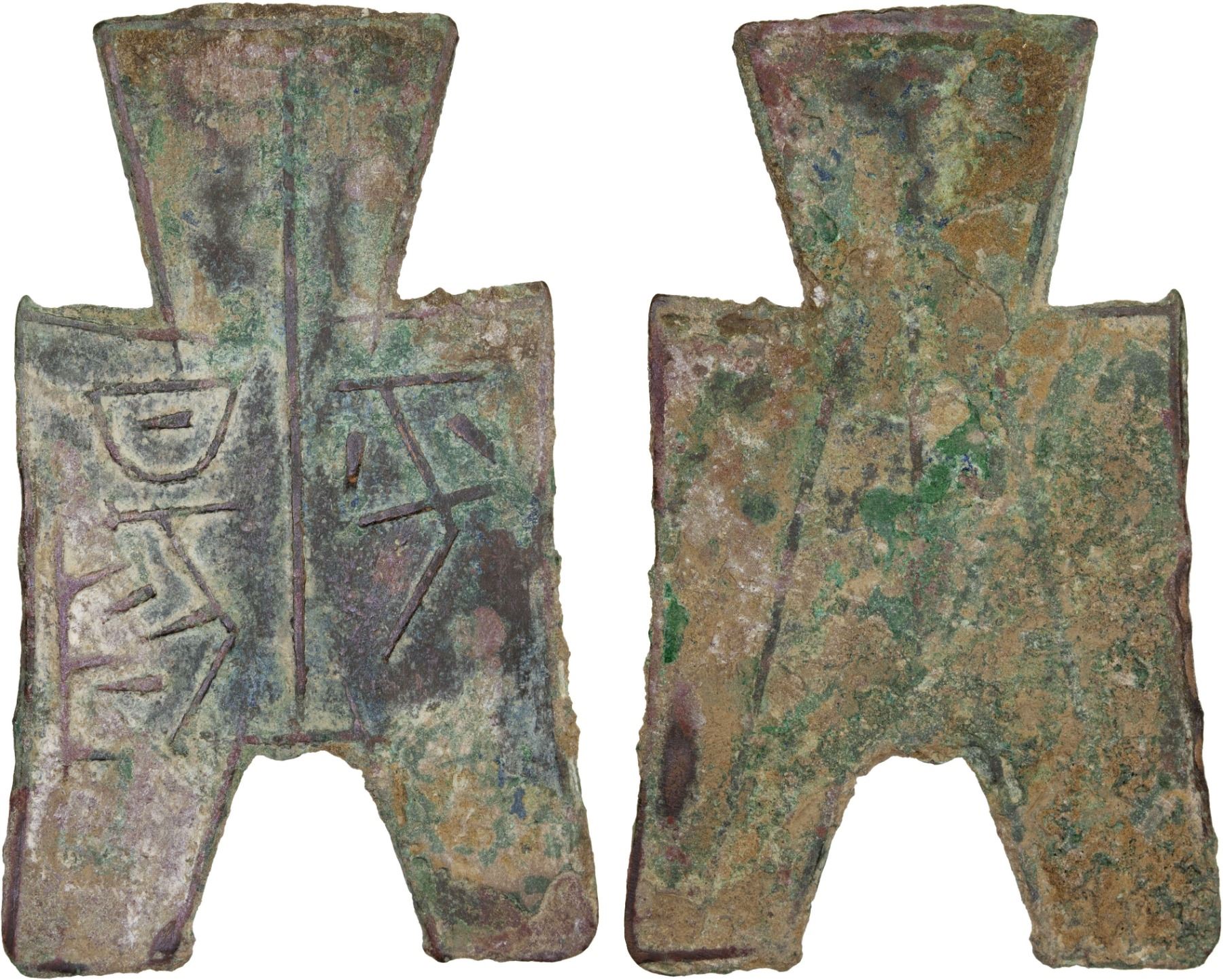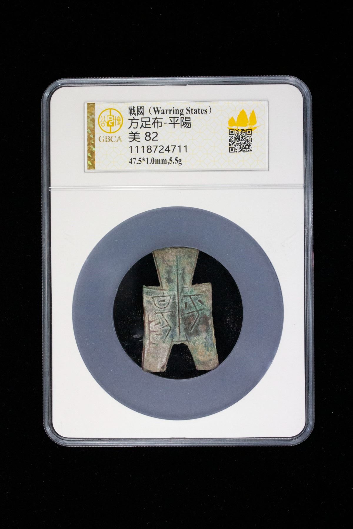 WARRING STATES: State of Liang, 350-250 BC, AE spade money (5.5g), H-3.355, flat-handled square foot type, ping yang in archaic script, small-size flan, graded 82 by GBCA Grading Company, attractive patina, VF, ex Dr. Dirk Löer Collection.