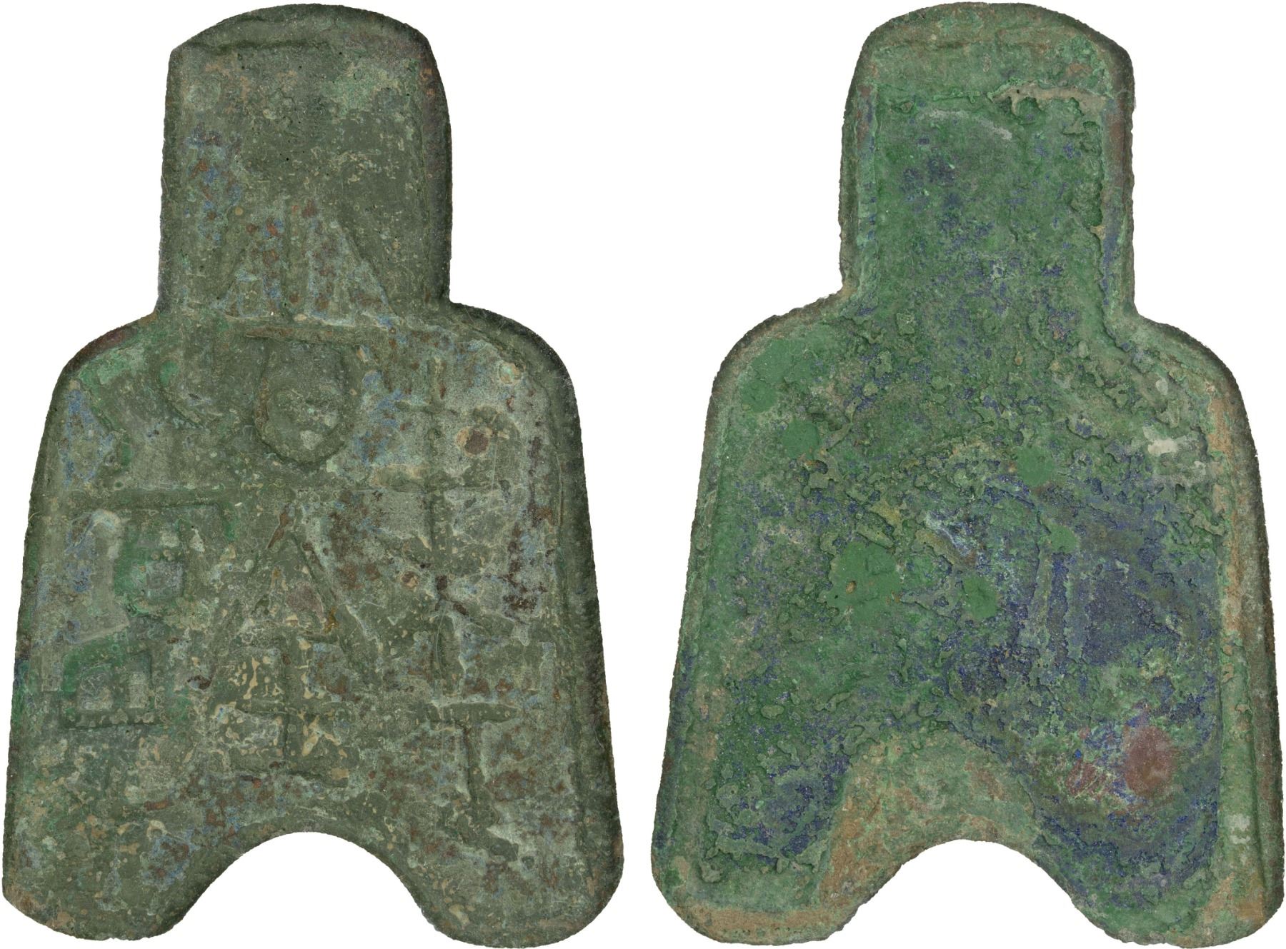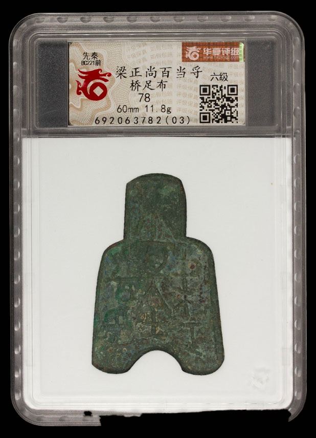 WARRING STATES: State of Liang, 400-300 BC, AE spade money (11.8g), H-3.45, flat-handled arched-foot type, liang zheng shang jin dang lie ("Liang standard superior money equal to one lie") in archaic script (one of the proposed readings of this inscription), graded 78 by Huaxia Grading Company, VF.