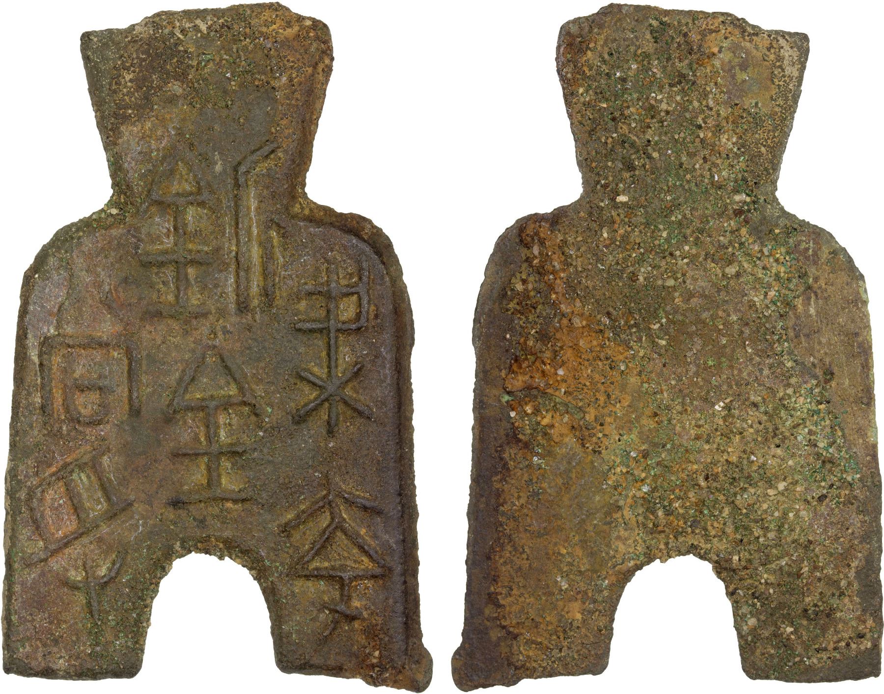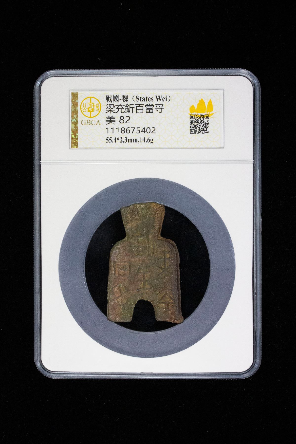 WARRING STATES: State of Liang, 400-300 BC, AE spade money (14.6g), H-3.46, flat-handled arched foot type, liang zheng bi bai dang lie in archaic script (one of three current proposed readings of this inscription), graded 82 by GBCA Grading Company, VF-XF, ex Dr. Dirk Löer Collection.