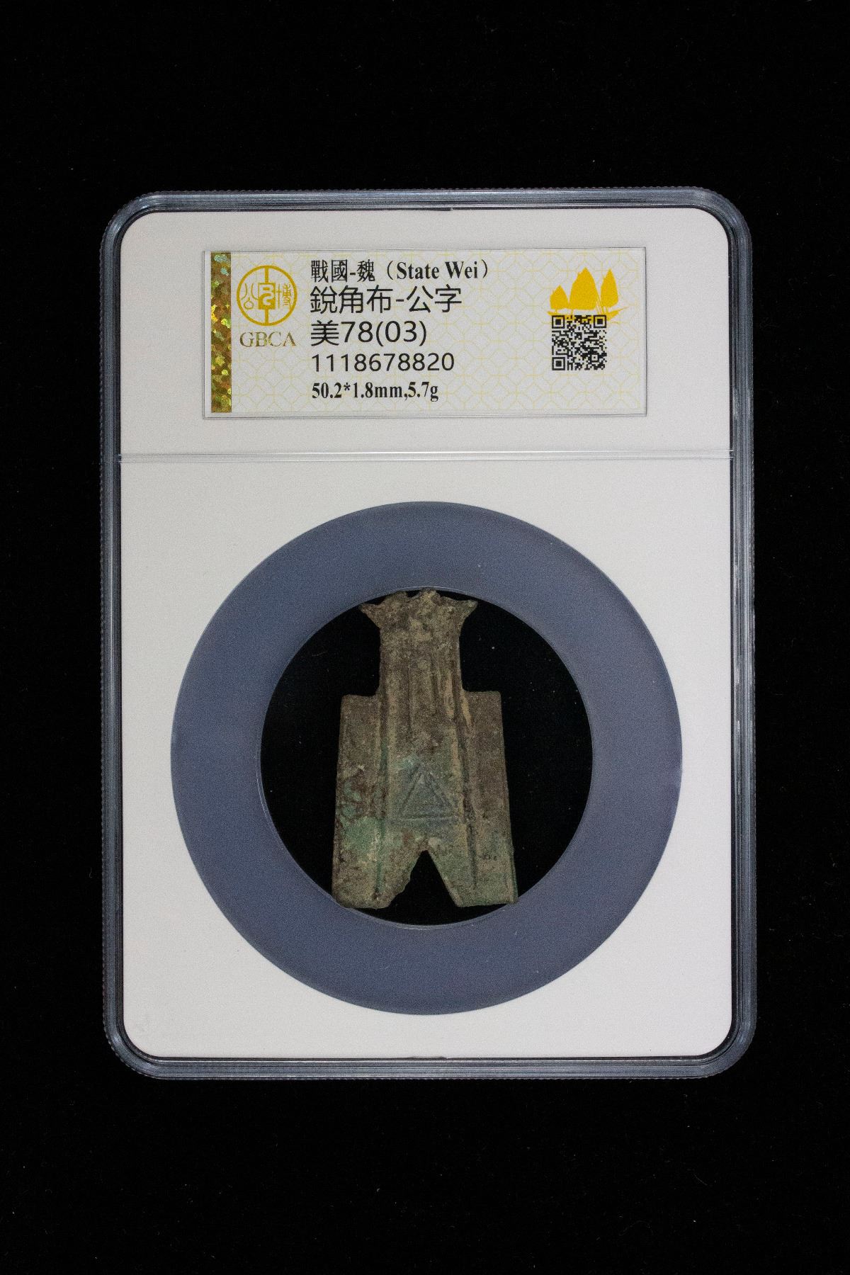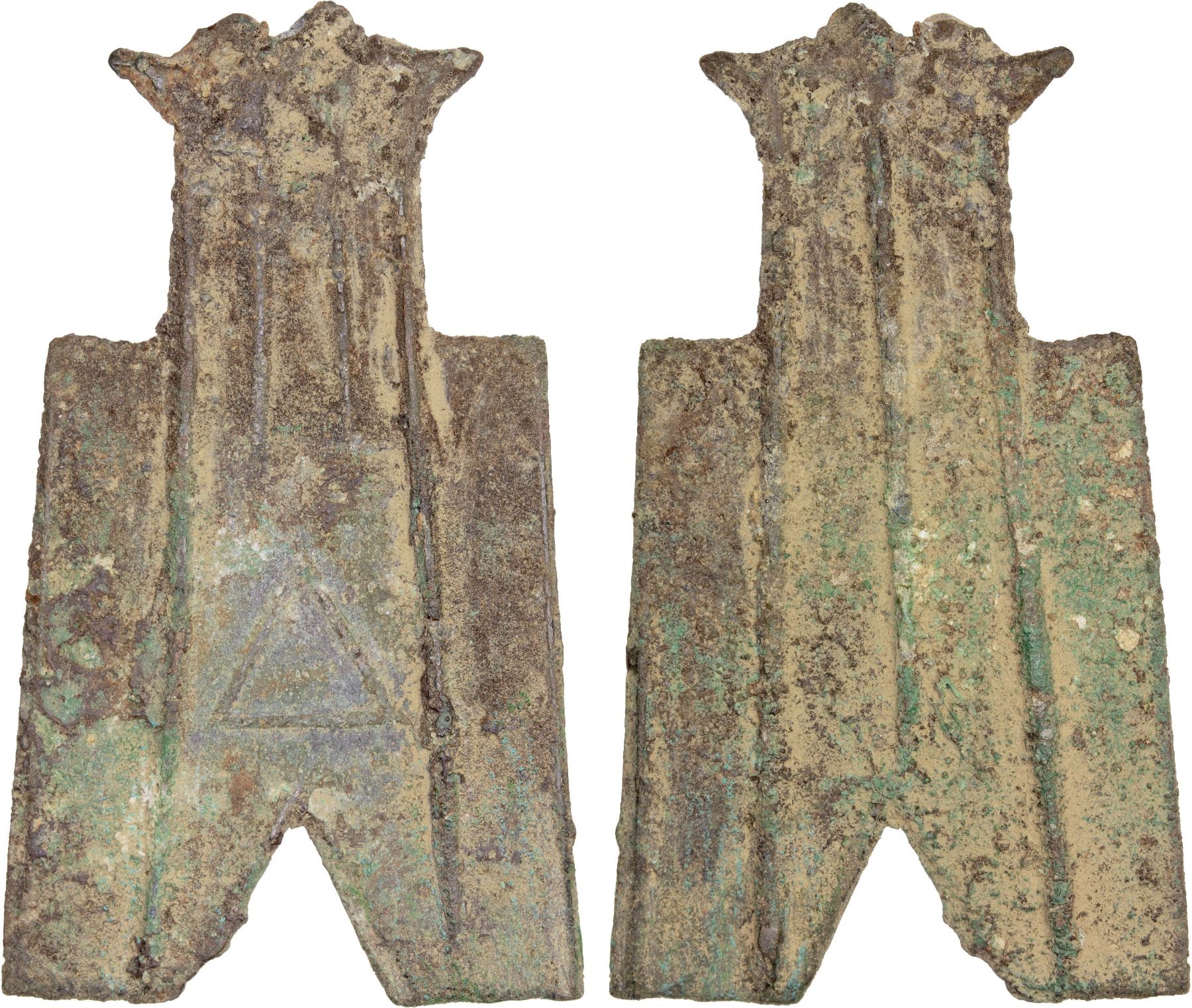 WARRING STATES: State of Liang/Han, AE spade money (5.7g), H-3.175, flat-handled sharp-cornered type, gong in archaic script, graded 78(03) by GBCA Grading Company, repaired, VF, ex Dr. Dirk Löer Collection.