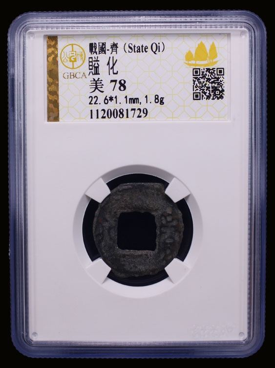 WARRING STATES: State of Qi, 300-200 BC, AE cash (1.8g), H-6.23, yi huo (currency of [City of] Yi) in archaic script, graded 78 by GBCA Grading Company, F-VF, ex Dr. Dirk Löer Collection.