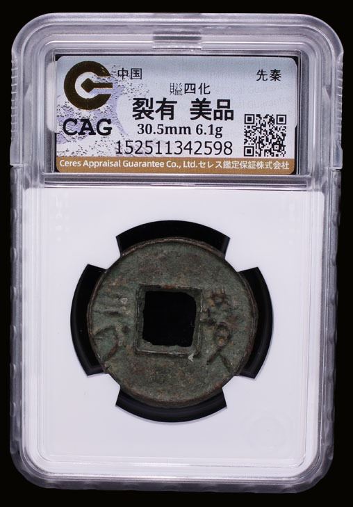 WARRING STATES: State of Qi, 300-220 BC, AE cash (6.1g), H-6.24, yi si huo ([City of] Yi, currency of [value] four) in archaic script, graded 'Genuine' by CAG Grading Company, natural casting crack, VF.