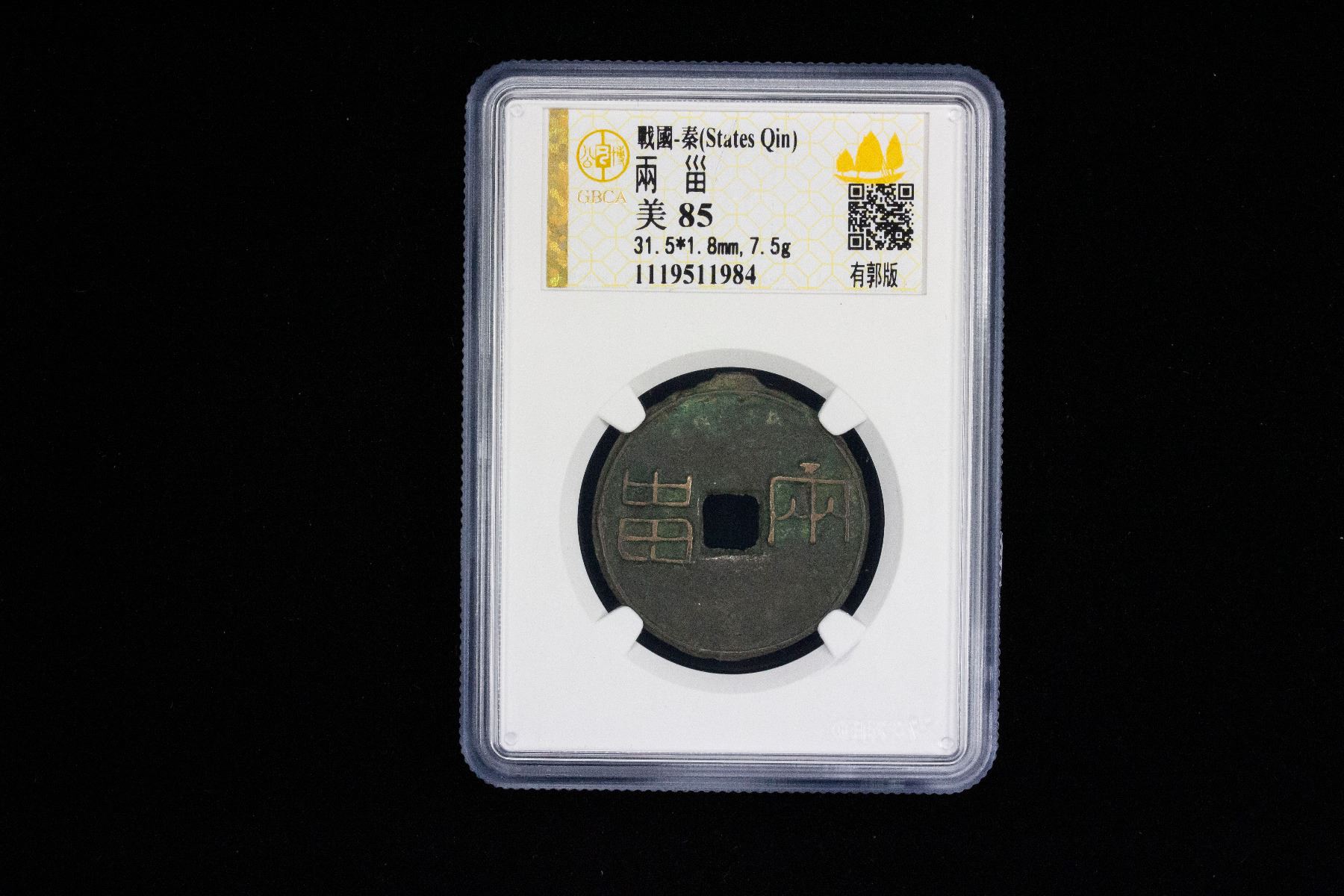 WARRING STATES: State of Qin, 250-220 BC, AE cash (7.5g), H-6.31, liang zi in archaic script, a gorgeous example of this scarce type, graded 85 by GBCA Grading Company, VF-XF, ex Dr. Dirk Löer Collection, ex China Guardian Auction Spring 2012, Lot 2085. A zi was the weight of 6 zhu and liang here means '2', therefore 2 zi was valued as 12 zhu.