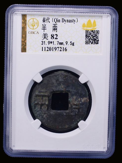 WARRING STATES: State of Qin, 300-200 BC (9.5g), H-7.7, 31mm, ban liang in archaic script, graded 82 by GBCA Grading Company, VF, ex Ilse & Rolf Braun Collection.