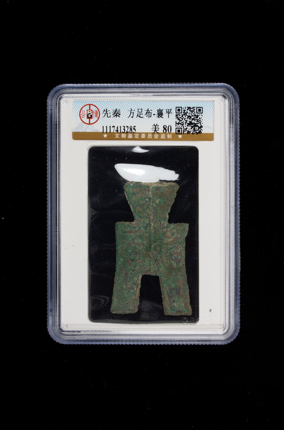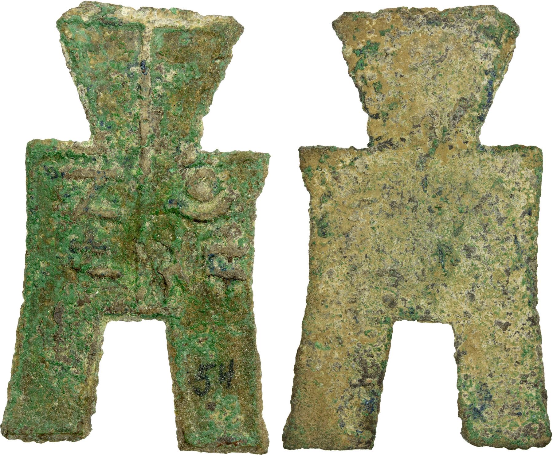 WARRING STATES: State of Yan, 350-250 BC, AE spade money (4.17g), H-3.401, flat-handle square-foot spade money, xiang ping in archaic script, Graded 80 by GBCA Grading Company.