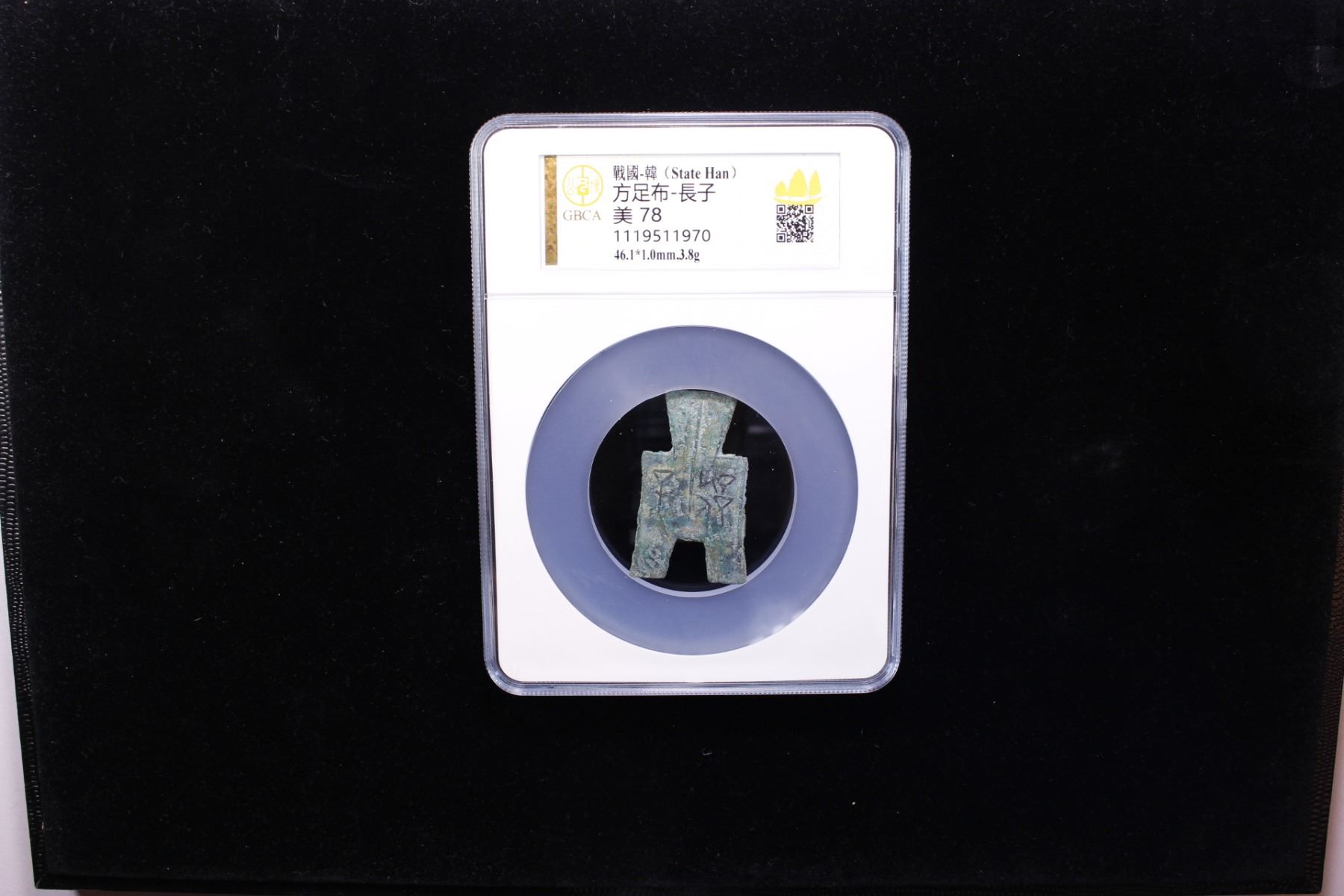 WARRING STATES: State of Zhao, 350-250 BC, AE spade money (3.8g), H-3.203, flat-handled square-foot spade type, chang zi in archaic script, graded 78 by GBCA Grading Company, Fine, ex Dr. Dirk Löer Collection.