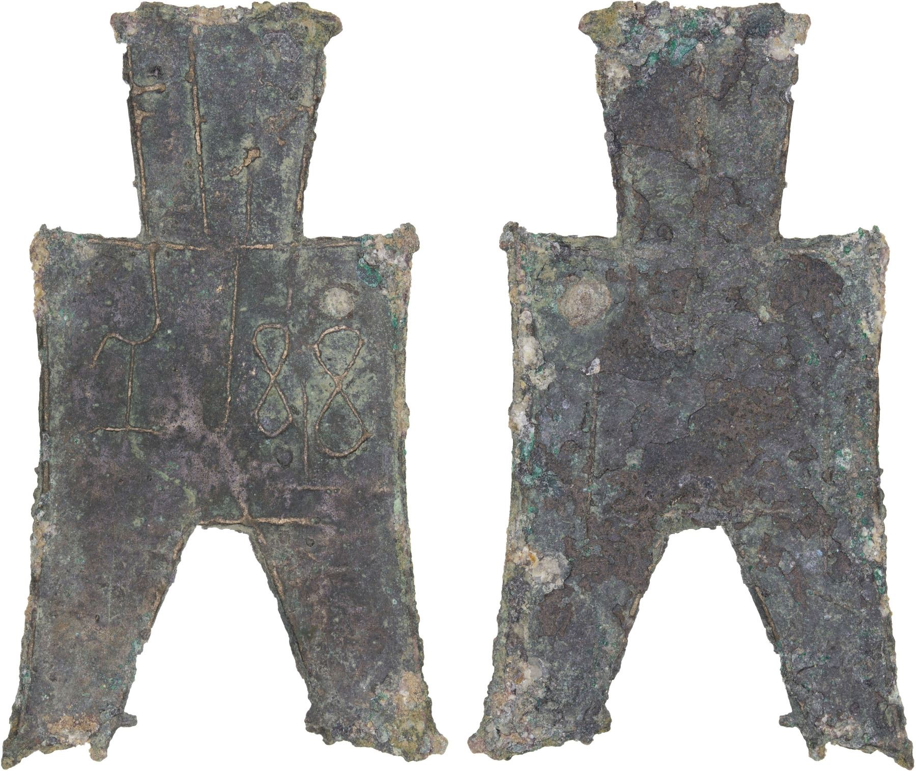 WARRING STATES: State of Zhao, 350-250 BC, AE spade money (4.0g), H-4.438, flat-handled square foot type, zi shi ban in archaic script, graded 78(05) by GBCA Grading Company, natural flan crack, F-VF, ex Dr. Dirk Löer Collection.