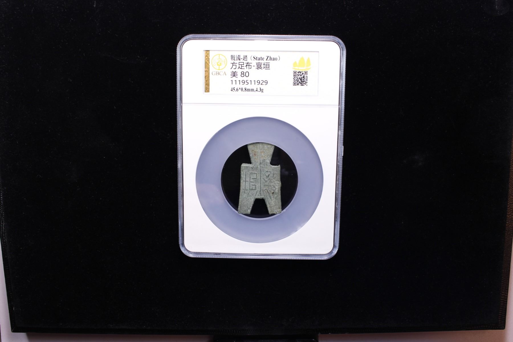 WARRING STATES: State of Zhao, 350-250 BC, AE spade money (4.3g), H-3.403, flat-handled square foot-spade type, xiang yuan in archaic script, graded 80 by GBCA Grading Company, F-VF.