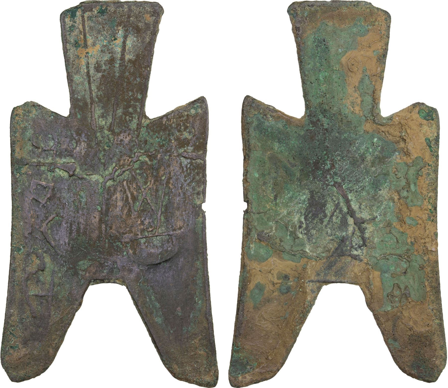 WARRING STATES: State of Zhao, 350-250 BC, AE spade money (4.7g), Jin Yang, H-3.83, flat-handled pointed foot type, jin yang ban in Archaic script, graded 75(06) by GBCA Grading Company, artificial defect, Fine, ex Dr. Dirk Löer Collection. Jin Yang was an ancient name of Taiyuan, the capital of today's Shanxi Province.