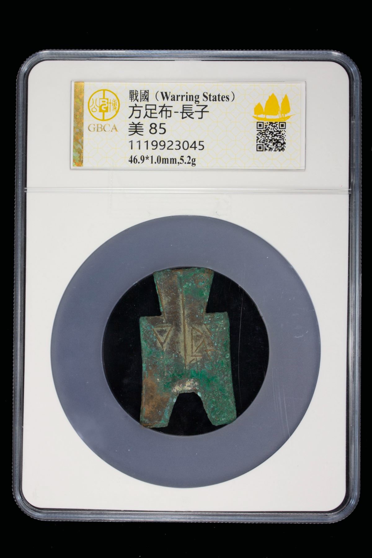 WARRING STATES: State of Zhao, 350-250 BC, AE spade money (5.2g), H-3.202, flat-handled square-foot type, chang zi in archaic script, graded 85 by GBCA Grading Company, VF-XF.
