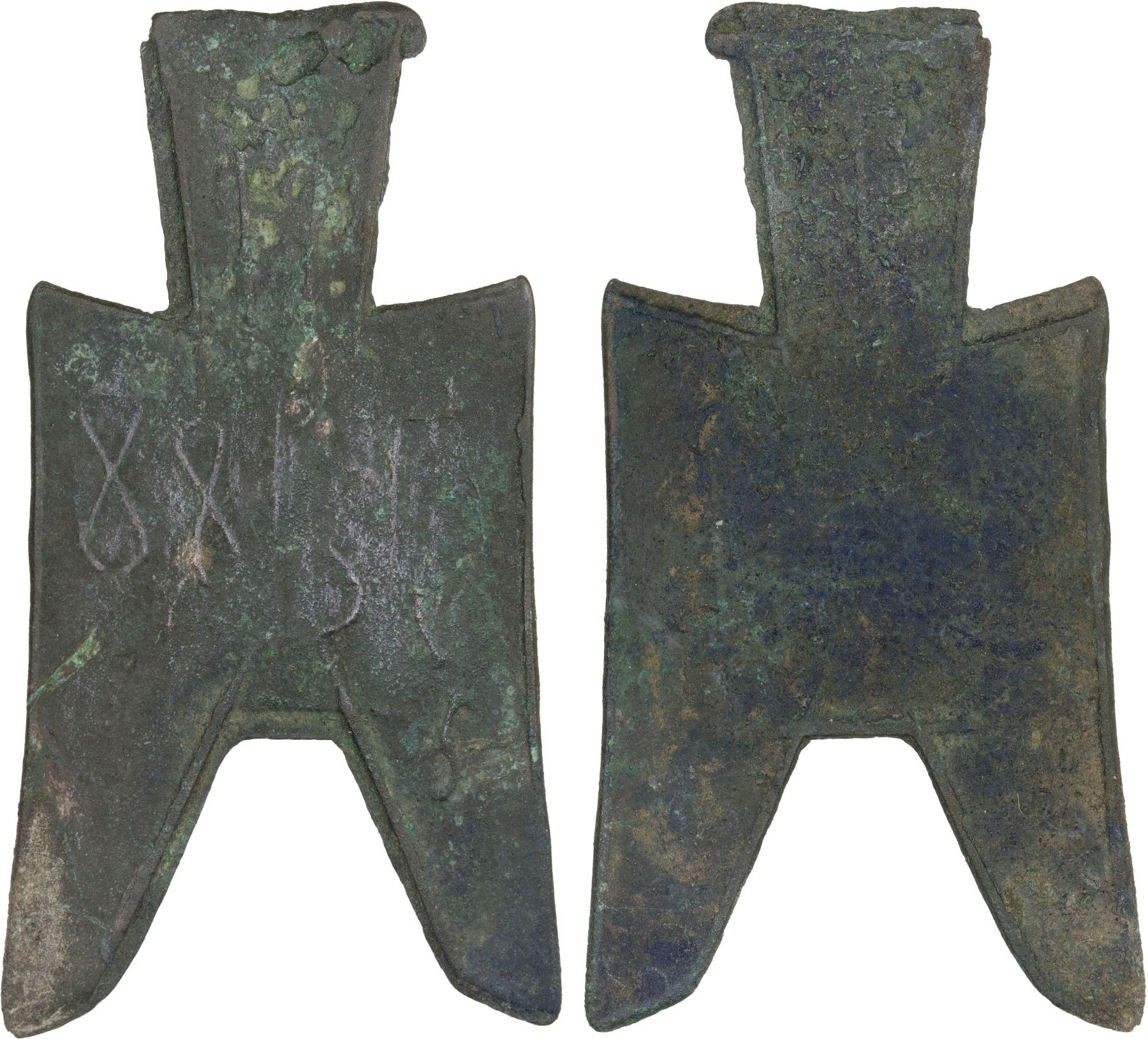 WARRING STATES: State of Zhao, 350-250 BC, AE spade money (5.3g), H-3.147, flat handle pointed foot spade type, reversed inscription zi shi ban in archaic script, graded 80 by GBCA Grading Company, VF, ex Dr. Dirk Löer Collection.