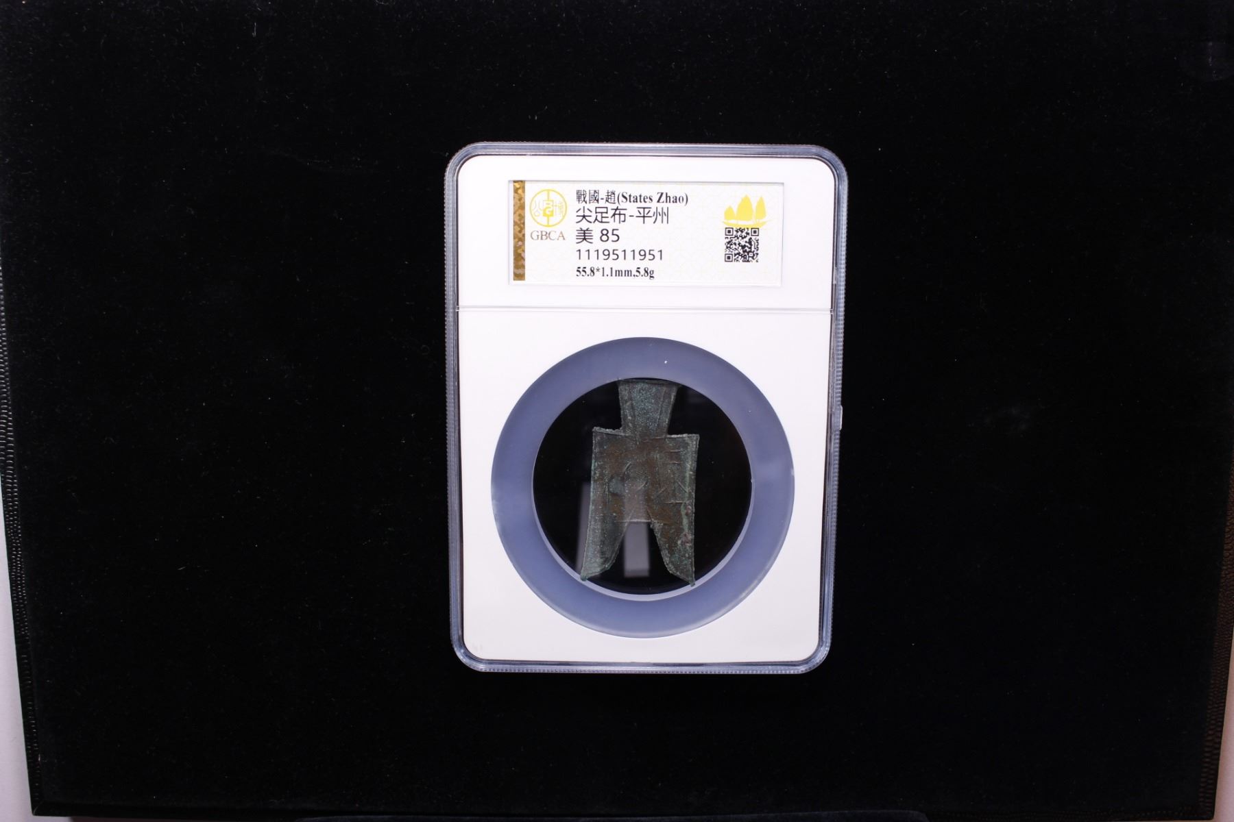WARRING STATES: State of Zhao, 350-250 BC, AE spade money (5.8g), H-3.107, flat-handle pointed-foot spade type, ping zhou in archaic script, graded 85 by GBCA Grading Company, VF-XF.