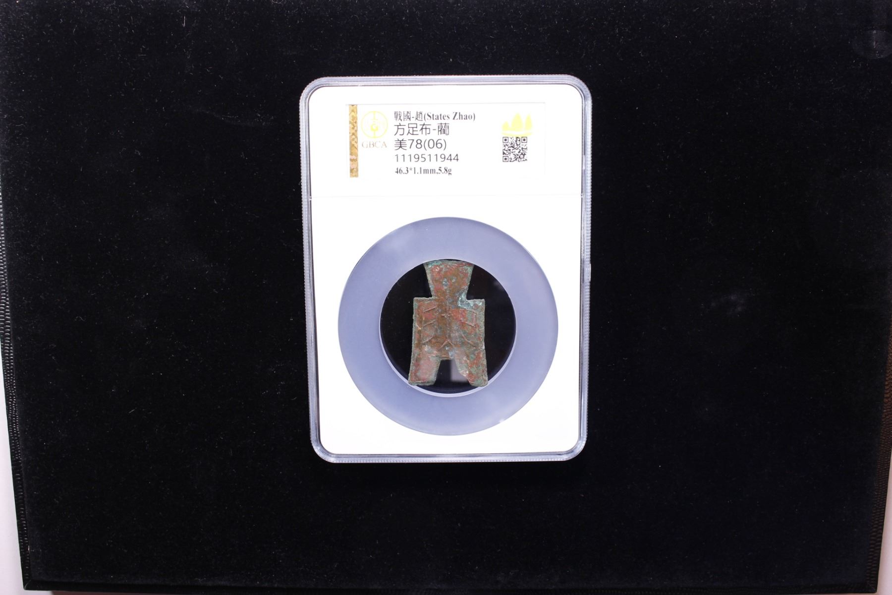 WARRING STATES: State of Zhao, 350-250 BC, AE spade money (5.8g), H-3.330, flat-handle square-foot spade type, lin in archaic script, graded 78(06) by GBCA Grading Company, artificial defect, VF.