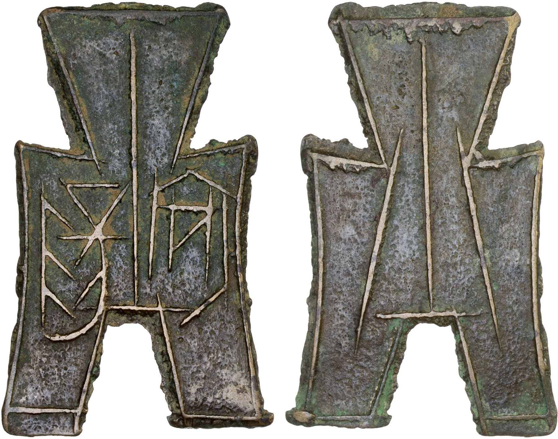 WARRING STATES: State of Zhao, 350-250 BC, AE spade money (6.18g), H-3.183, flat-handled square foot type, an yang in archaic script, a beautiful example with glossy brown patina, XF.