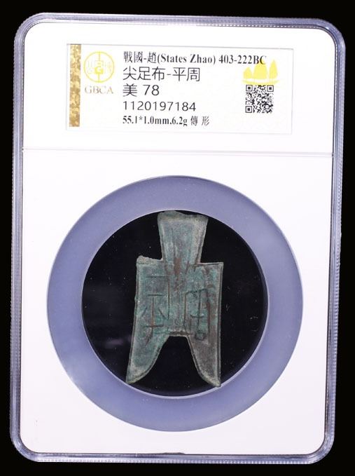 WARRING STATES: State of Zhao, 350-250 BC, AE spade money (6.2g), H-3.105var, flat-handled pointed-foot spade type, ping tao in archaic script, graded 78 by GBCA Grading Company, VF, ex Ilse & Rolf Braun Collection.