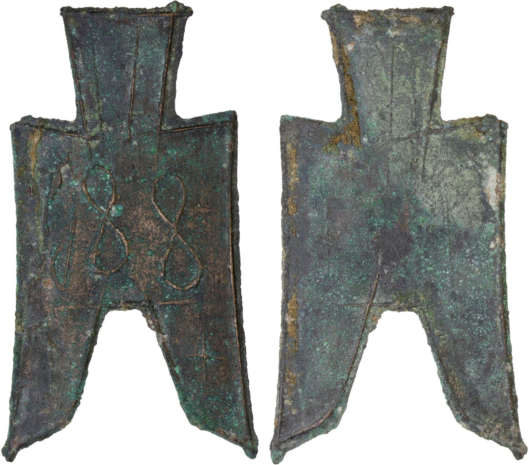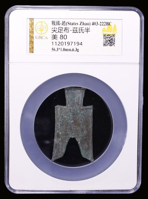 WARRING STATES: State of Zhao, 350-250 BC, AE spade money (6.3g), H-3.145, flat-handled pointed-foot spade type, wu ping in archaic script, graded 80 by GBCA Grading Company, VF, ex Ilse & Rolf Braun Collection.