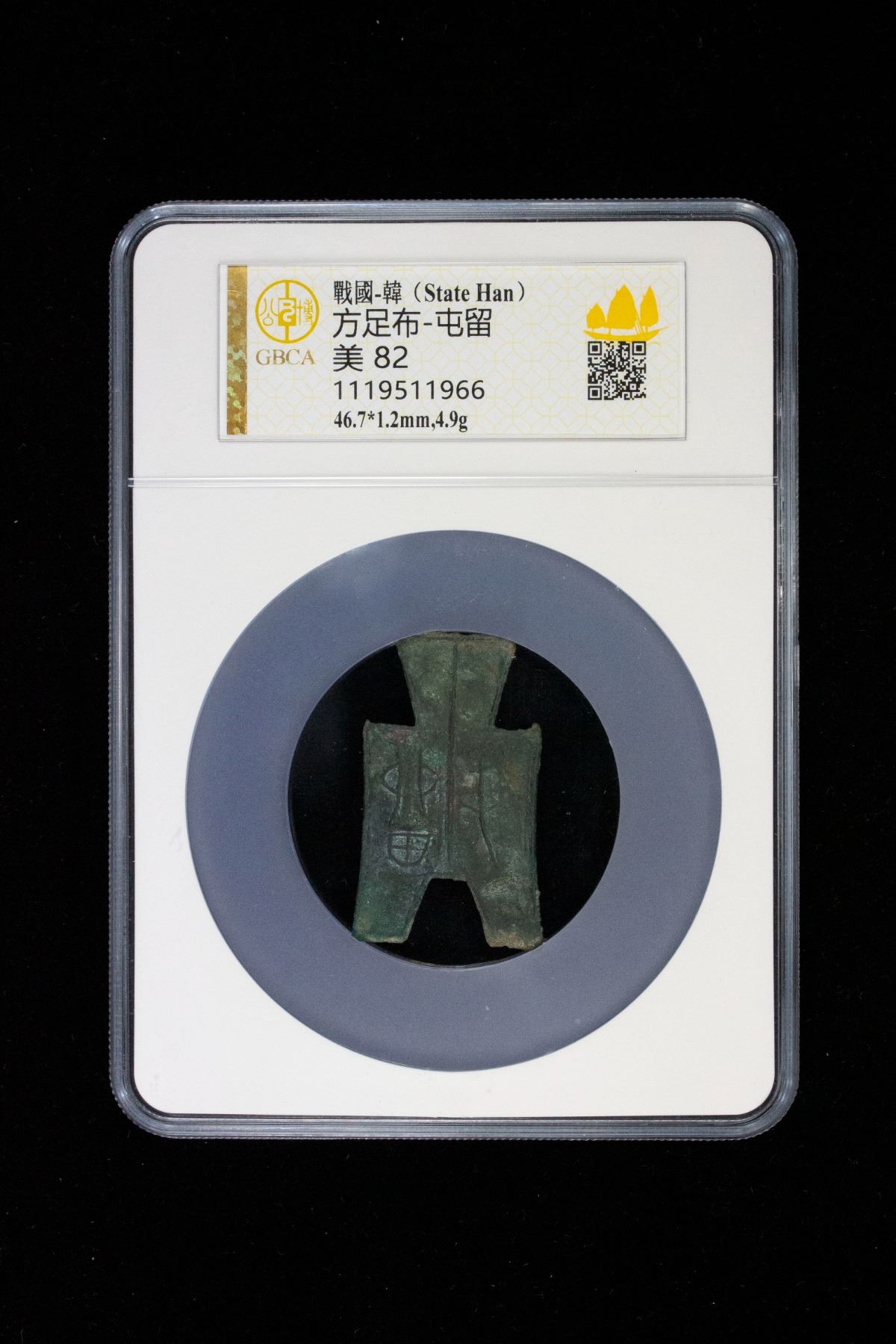 WARRING STATES: State of Zhou, 350-250 BC, AE spade money (4.9g), H-3.332, flat-handled square foot type, liu in archaic script, graded 82 by GBCA Grading Company, VF, ex Dr. Dirk Löer Collection.