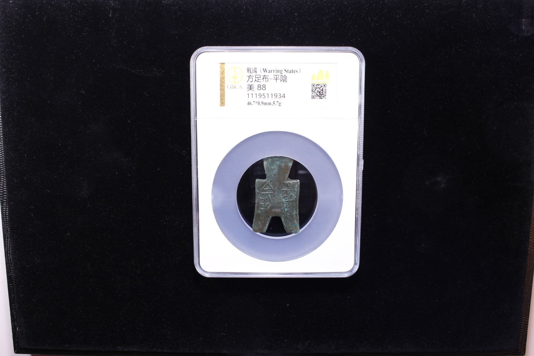 WARRING STATES: State of Zhou, 350-250 BC, AE spade money (5.7g), H-3.364, flat-handle square-foot spade type, ping yin in archaic script, graded 88 by GBCA Grading Company, XF.