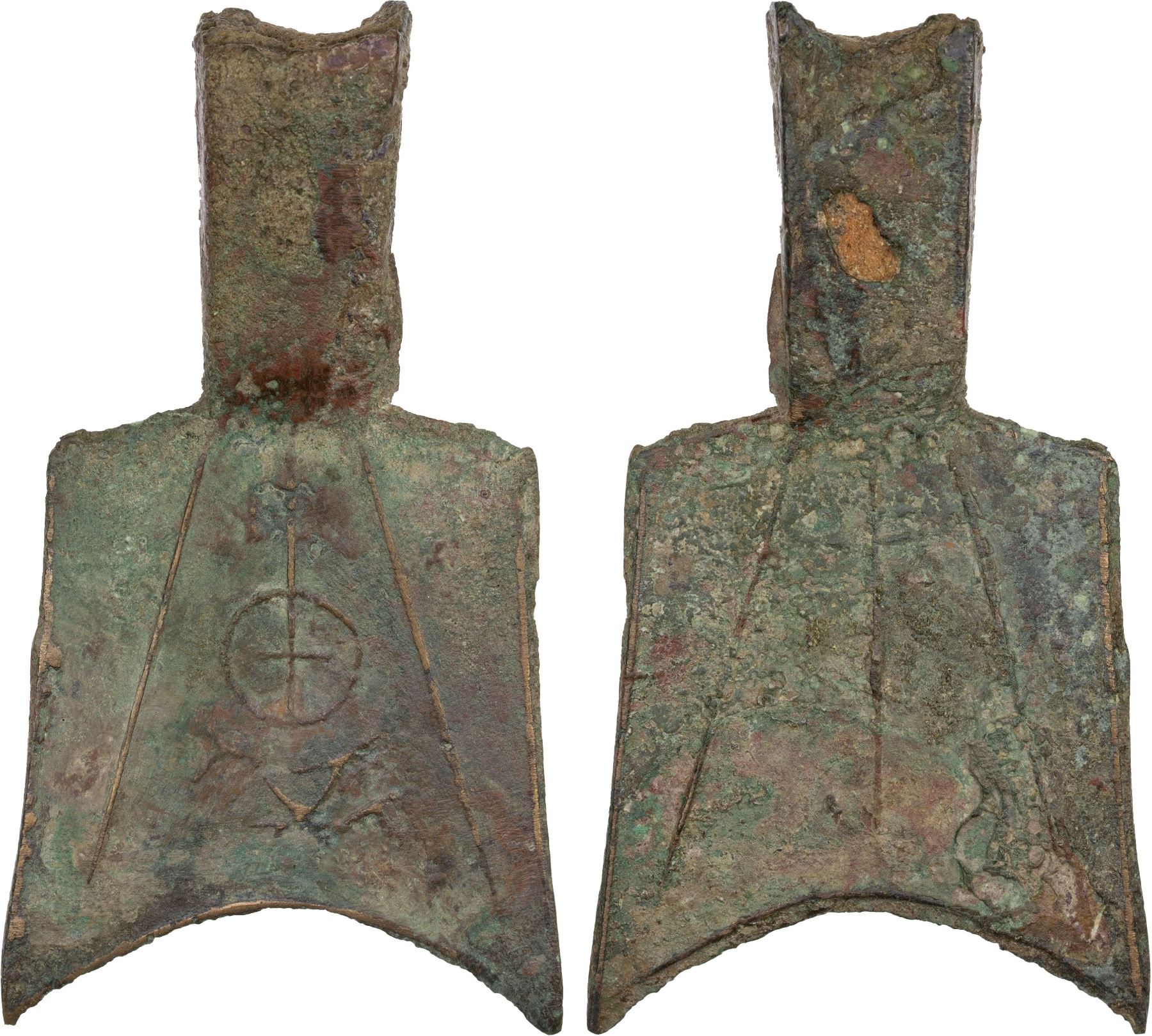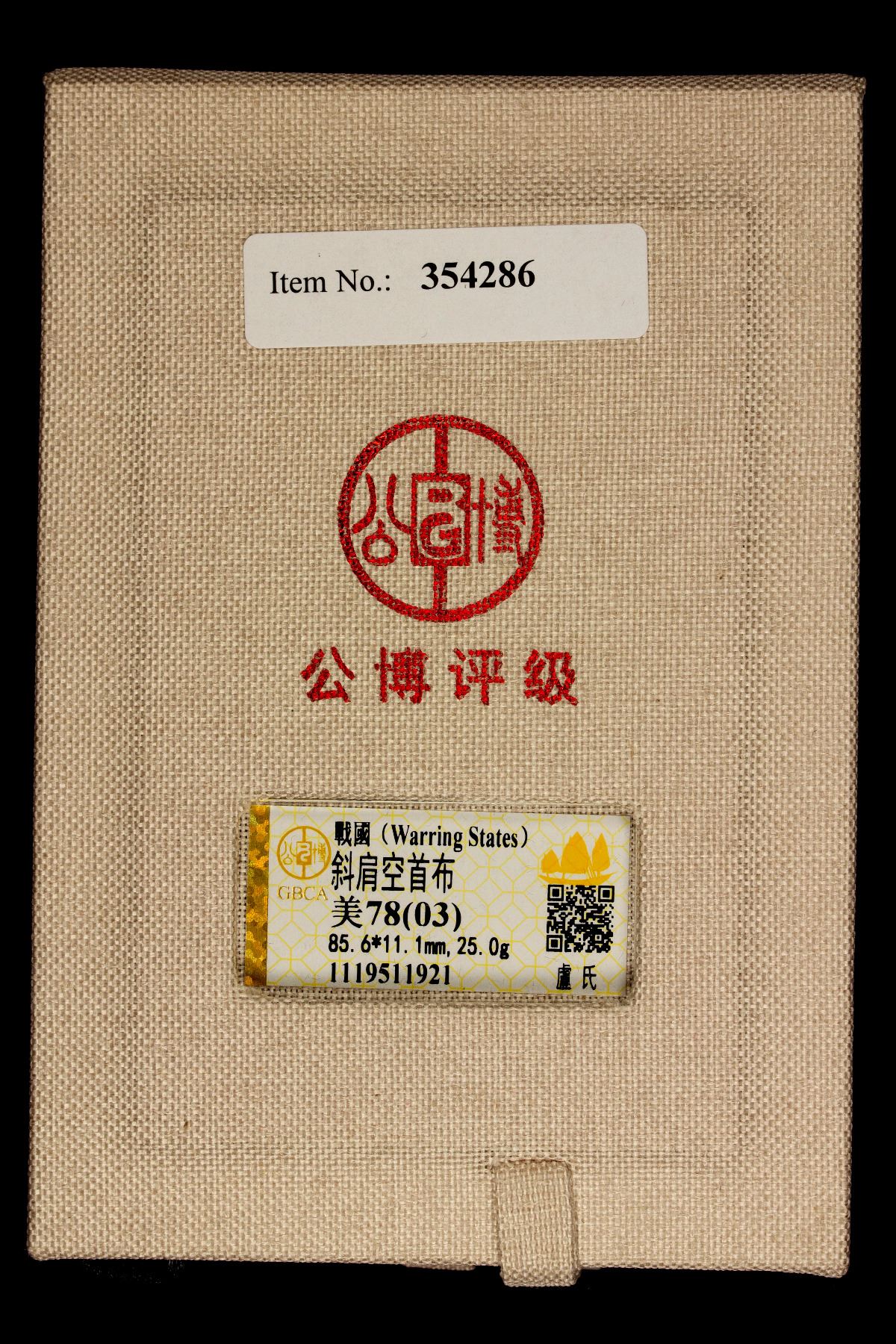 WARRING STATES: State of Zhou, 400-300 BC, AE spade money (25.0g), Lu Shi, H-2.167, hollow-handled sloping shoulder type, lu shi in archaic script, graded 78(03) by GBCA Grading Company, repaired, VF, ex Dr. Dirk Löer Collection. Associated with the Kingdom of Zhou and the Henan area. Lu Shi is today a county by the same name in Sanmenxia City in western Henan.
