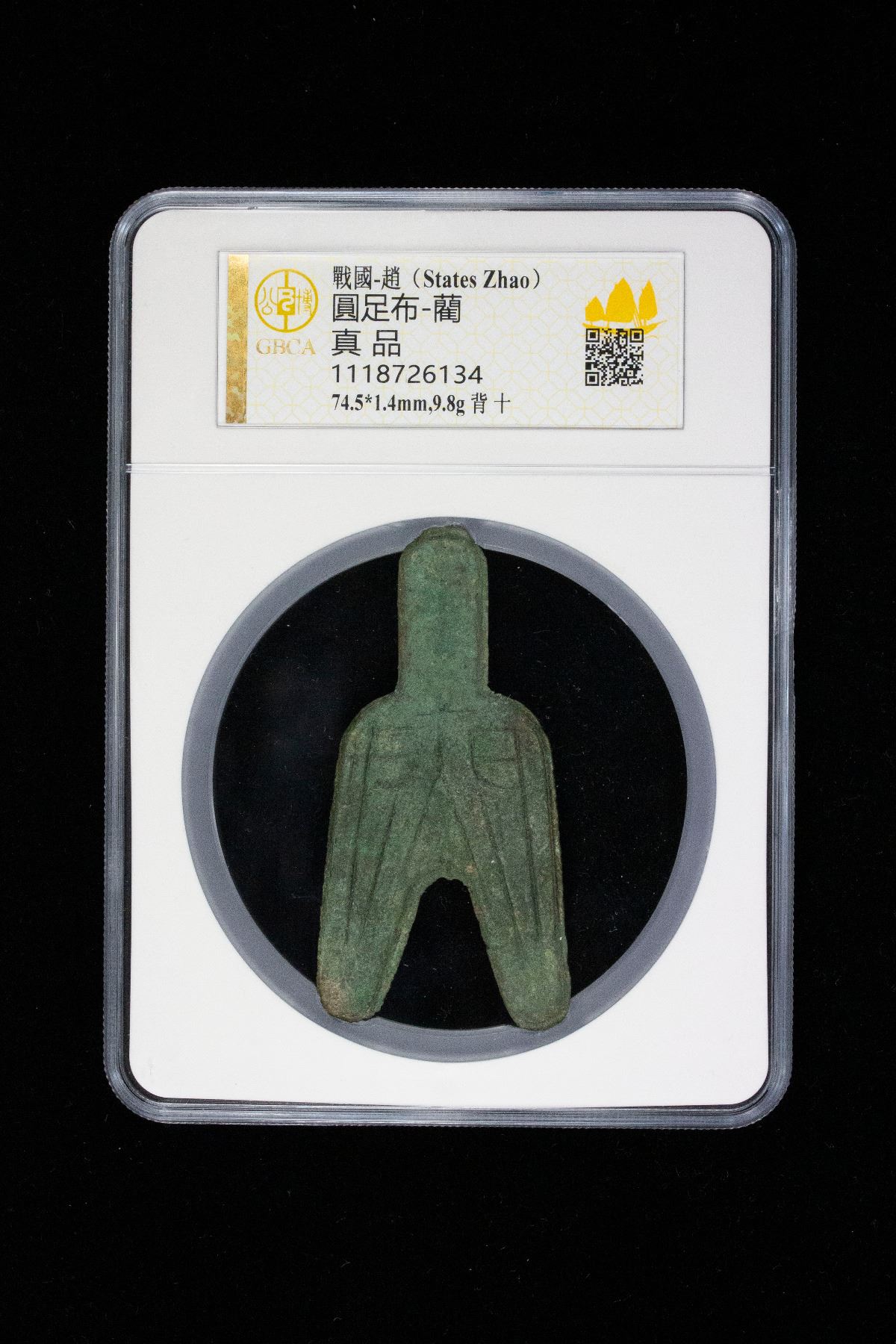 WARRING STATES: States of Qin & Zhao, 350-250 BC, AE spade money (9.8g), Lin, H-3.482, round-handled type with round shoulders and feet, large size, archaic lin on obverse, graded 'Genuine' by GBCA Grading Company, VF-XF, ex Dr. Dirk Löer Collection. This type is represented by the coins of five cities in present-day Shanxi, between the Fen and Yellow River. There are two sizes, the equivalent of the one jin and half jin denominations. They have various numerals on their reverses. One school of thought ascribes them to the states of Qin and Zhao at the end of the Warring States period; another to the State of Zhongshan during the 4th century BC.The ancient territory of Lin belonged to the State of Zhao until it was seized by Qin in 328 BC. It is presently located within Lüliang City in western Shanxi.