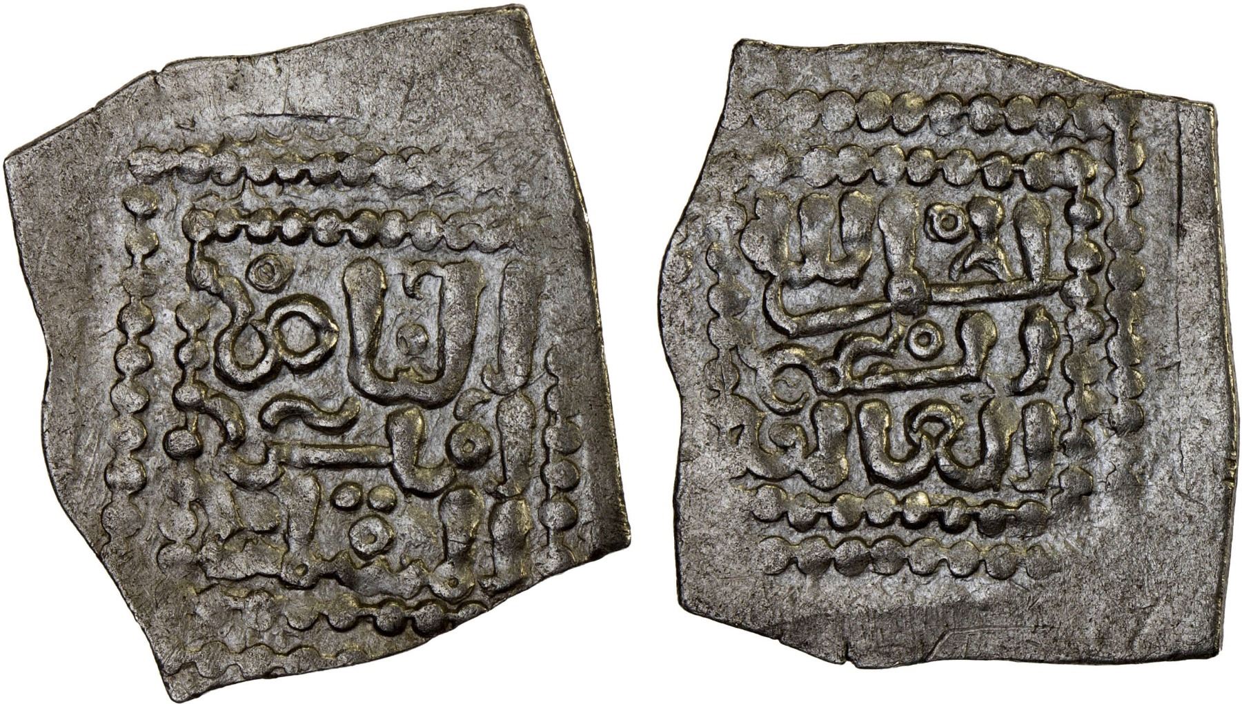 WATTASID: Muhammad I al-Shaykh, 1471-1504, AR square 2/3 dirham (0.87g), NM, ND, A-548, legends al-hamdu lillah / rabb / al-'alamayn // al-nasir / amir / al-muslimin; superb strike on broad flan, choice XF, RR. Hohertz has reassigned this type fo the Merinid Abu Ya'qub Yusuf (1286-1307) but the style and calligraphy suggests this type was issued at least 100-200 years later, and the style corresponds to the Wattasid series.