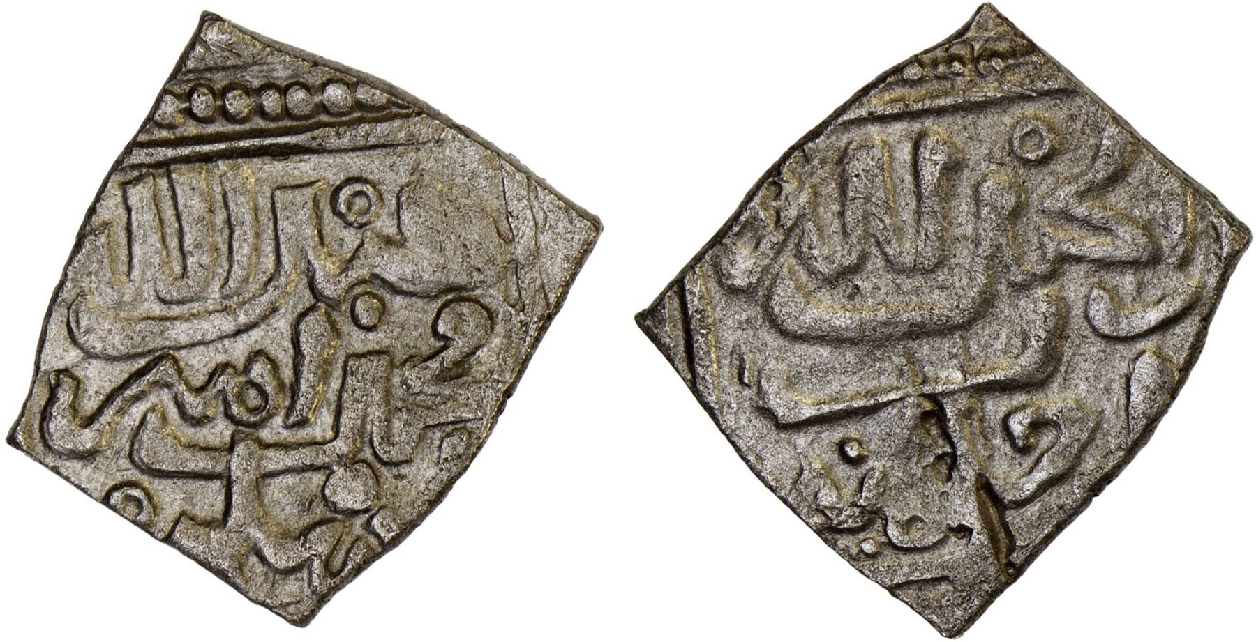 WATTASID: Muhammad II al-Burtuqali, 1504-1525, AR square fractional dirham (0.78g), NM, ND, A-A549, reverse legend 'abd Allah / muhammad amir / al-muslimin; unusually heavy, thus uncertain actual intended denomination, bold VF.