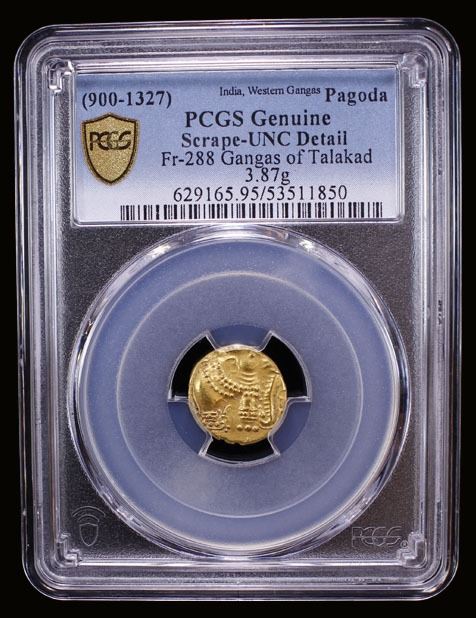WESTERN GANGAS: Anonymous, ca. 12th-13th century, AV pagoda (3.87g), PCGS Unc details