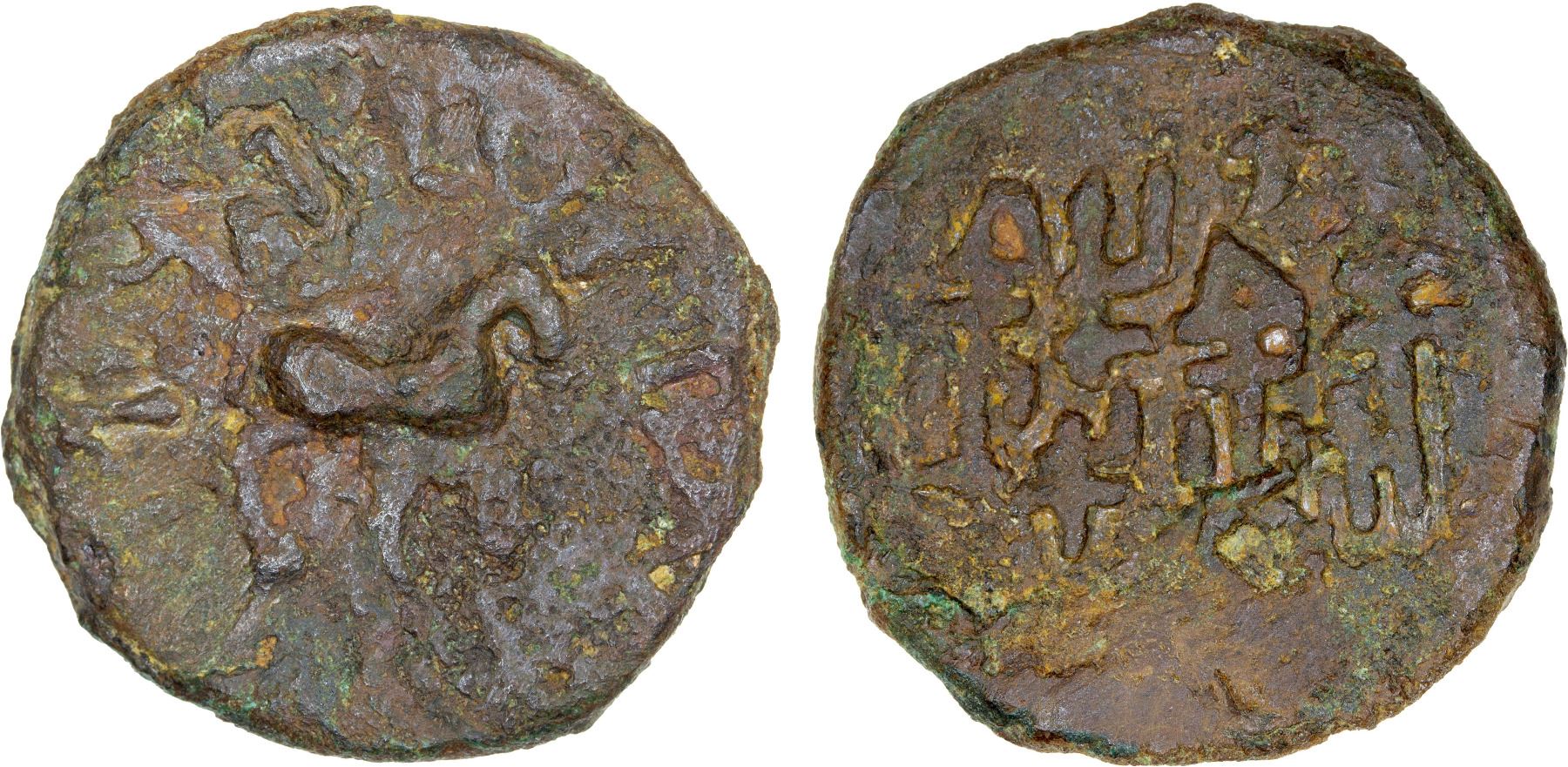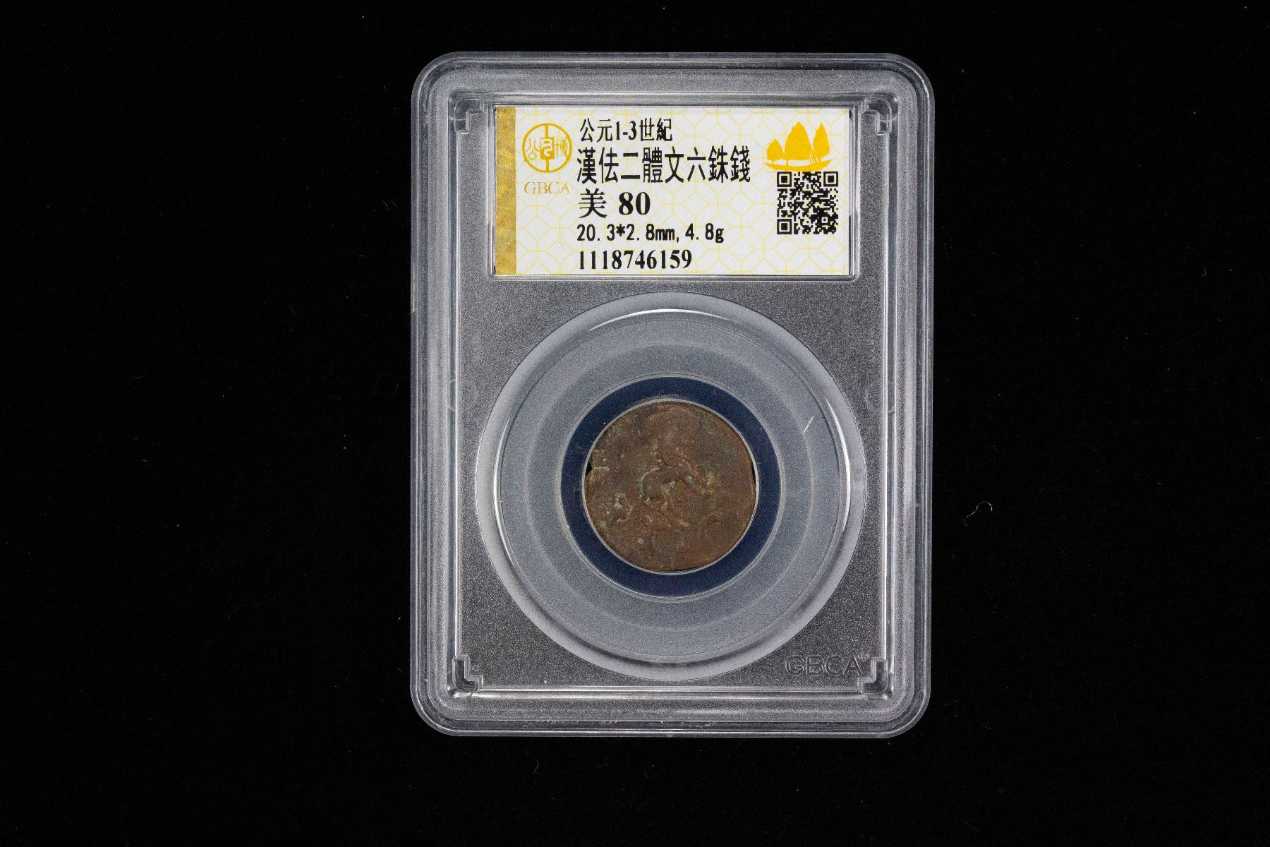 WESTERN HAN: Yutian Kingdom, ca. 2nd-3rd century, AE 6 zhu (4.8g), Cribb-2/5, Sino-Kharosthi series, struck posthumously in the name of Gurgamoya (ca. 30-60 AD), horse right, Kharosthi legend around // Han Dynasty period Chinese inscription, standard Chinese character for "6" above, graded 80 by GBCA Grading Company, F-VF, ex Dr. Dirk Löer Collection. The Yutian Kingdom was located in the Khotan (Hetian) region in today's southwestern Xinjiang, China. See Cribb's articles in Numismatic Chronicle Volumes 144 & 145 (1984 & 1985).