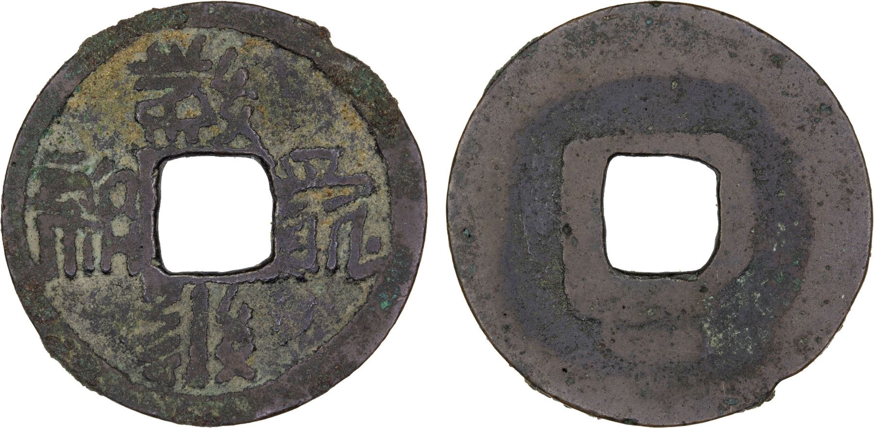 WESTERN XIA: Da An, 1068-1086, AE cash (2.7g), H-18.91, t-ha-h ray lee ndzen in Tangut script (da an bao qian in Chinese), crescent above on reverse, Graded 80(07) by GBCA Grading Company, natural casting defects, VF, ex Dr. Dirk Löer Collection. The Tangut script (xi xià wén) was a logographic writing system, used for writing the extinct Tangut language of the Western Xia Dynasty. Tangut characters are similar in appearance to Chinese characters, with the same type of strokes, but the methods of forming characters in the Tangut writing system are significantly different from those of forming Chinese characters. There are only five coin types in Tangut script and all are very rare.