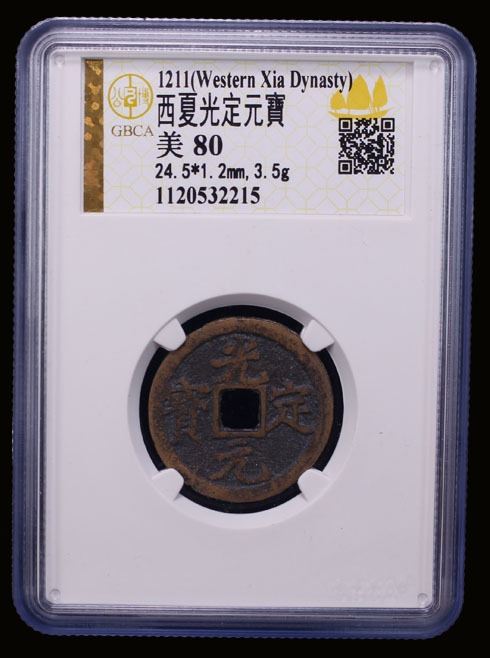 WESTERN XIA: Guang Ding, 1211-1223, AE cash (3.5g), H-18.109, graded 80 by GBCA Grading Company, VF.