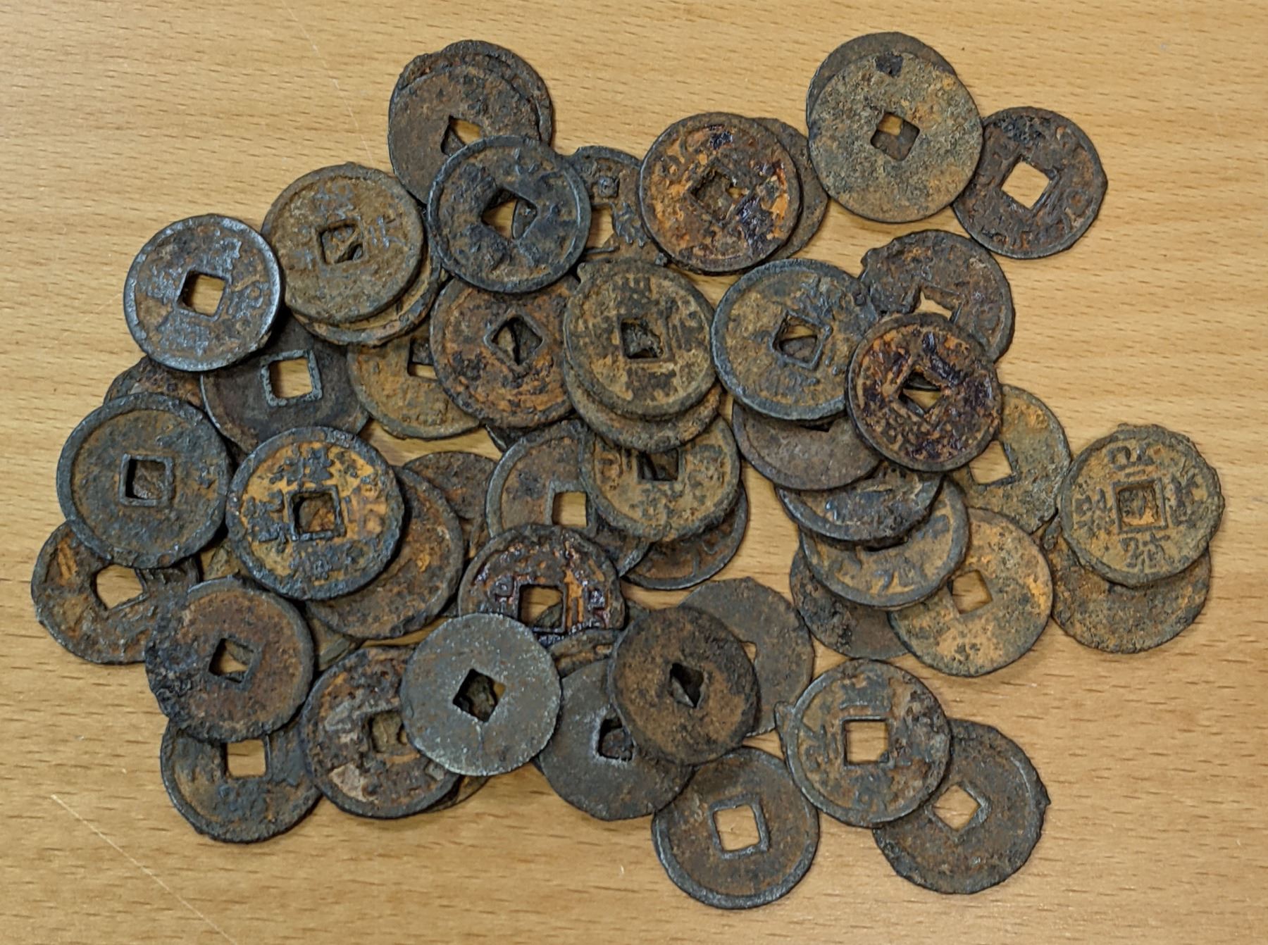 WESTERN XIA:LOT of 54 iron cash coins of Qian You (1170-1193), Type H-18.104, average encrusted quality examples for this scarce iron issue, retail value $800, lot of 54 coins, ex Dr. Allan Pacela Collection.