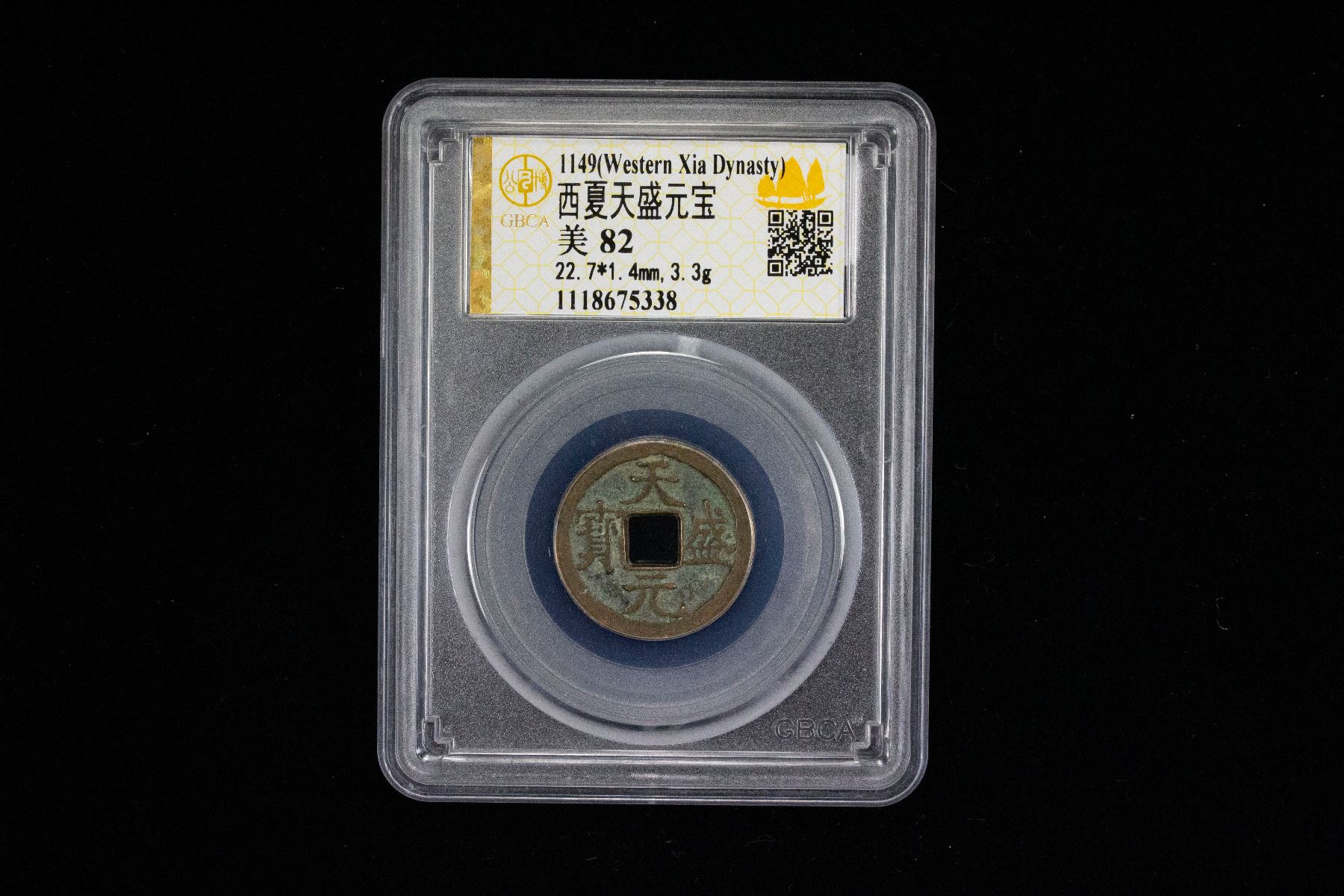 WESTERN XIA: Tian Sheng, 1149-1169, AE cash (3.3g), H-18.99s, Zeno-916 (this example), tie mu "iron mother", a copper mother coin for iron coin type, Graded 82 by GBCA Grading Company, VF, ex Dr. Dirk Löer Collection, ex Stephen Album Auction 23, Lot 698, ex Shèngbidébao Collection.