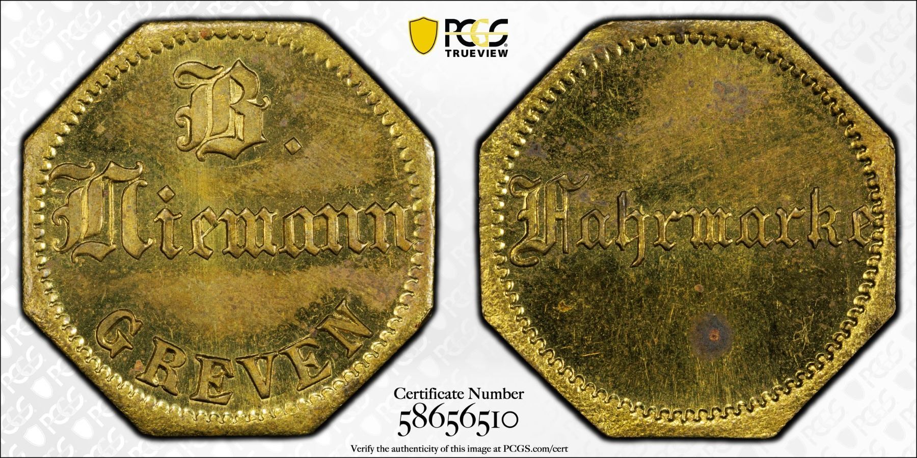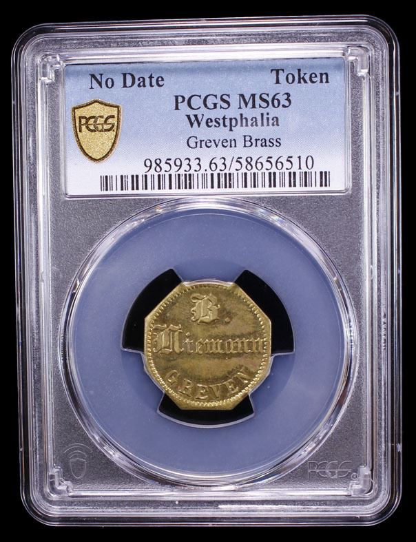 WESTPHALIA: brass token, ND, Menzel---, 21mm, from Griven issue by B. Niemann, an unpublished type, a lovely mint state example! PCGS graded MS63. A Jahrmarkt or "year-market" is a traditional European folk festival or fun fair, featuring amusement rides, food stalls, games, music, and local crafts, similar to an American county fair or carnival, often with historical roots as annual trade events.