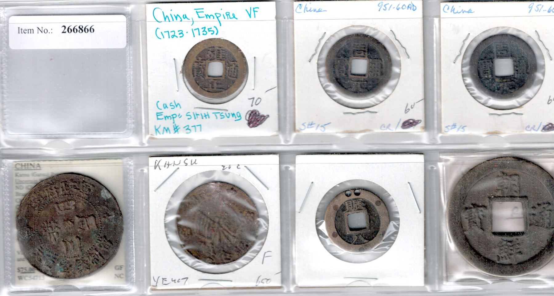 WORLDWIDE: ASIA:LOT of 7 coins and amulets including Qing dynasty Yong Zheng cash coin, Chinese charms (2), Chinese Kansu Province warlord cast issues (2), Korea amulets (2), average circulated quality, retail value $200, lot of 7 items.