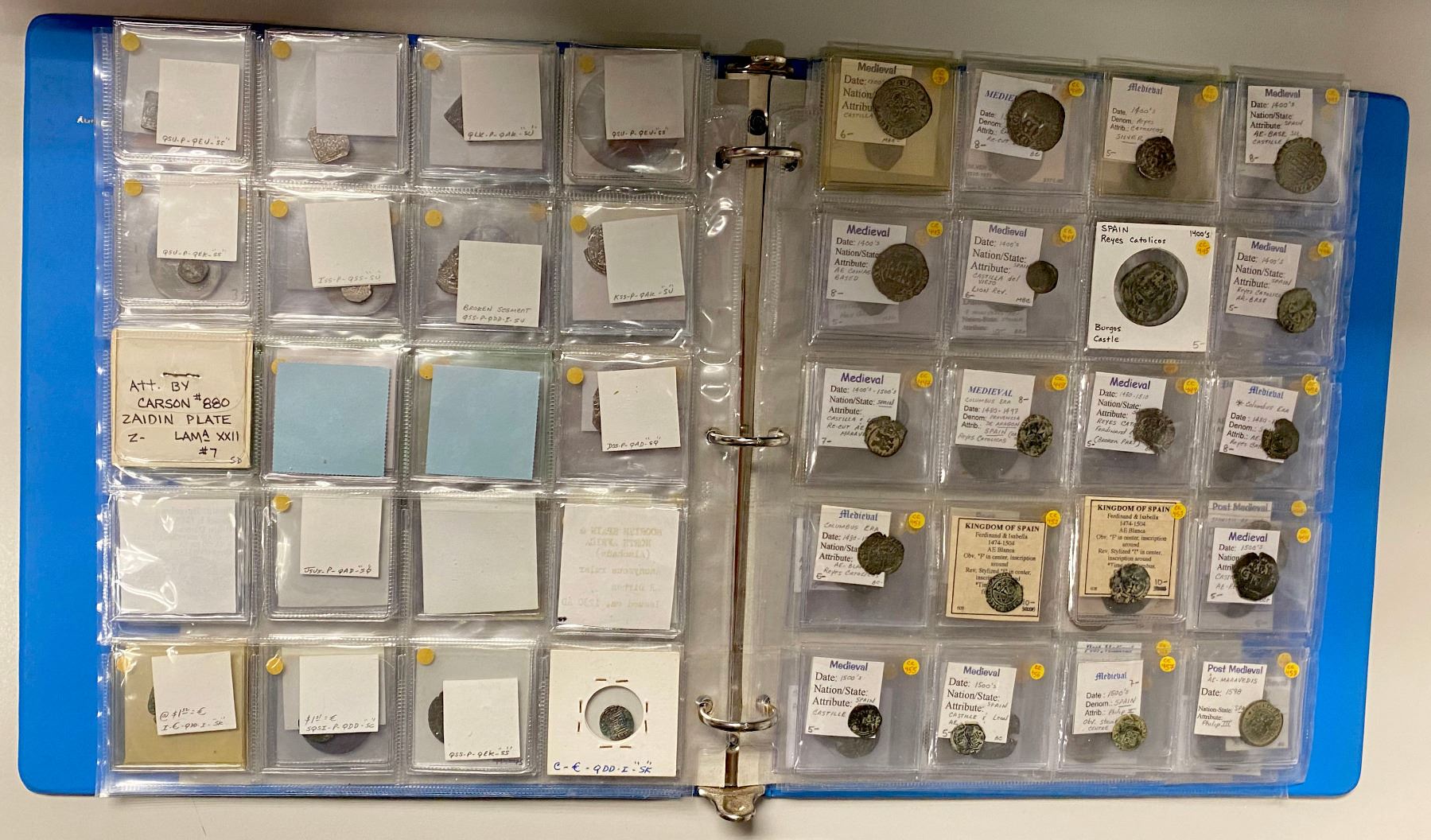 WORLDWIDE: LOT of 119 coins, includes: India: mostly modern, low quality (36 pcs); European Colonial (4 pcs, little value); Islamic (13 pcs, including 2 Spanish Umayyad dirhams with legible dates (AH263 and 339); Medieval Spain (25 pcs, mostly Castillo Leon, lower quality including several damaged); Early Modern Spain, 16th-18th century (34 pieces, including a Potosi cob 2 reales of Filipe III in Fine condition, and several VF or slightly better copper coins of the 17th century countermarked with a denomination), and Modern Spain (7 pcs); generally lower quality throughout the group; retail value $1000, lot of 119 pieces.