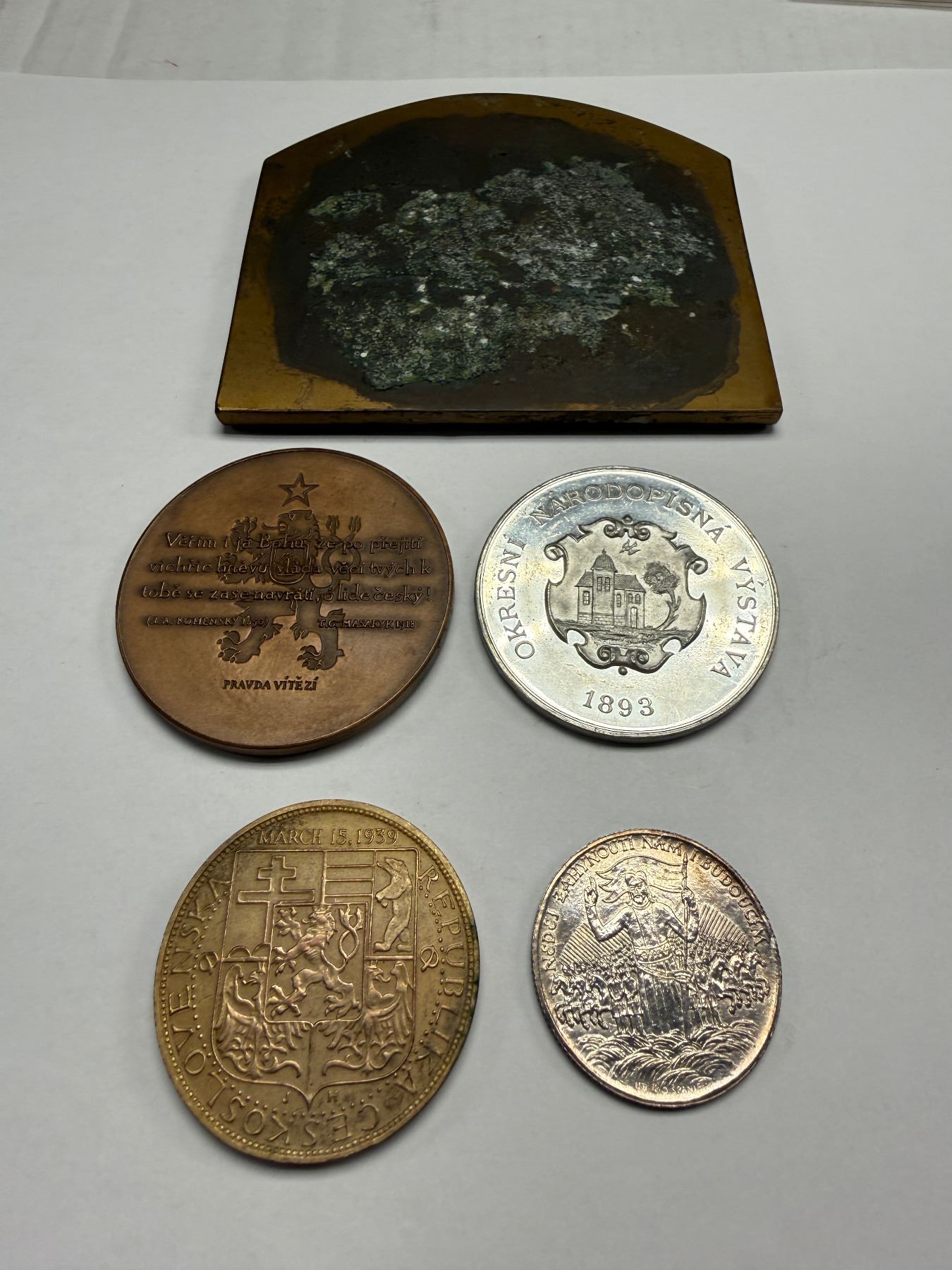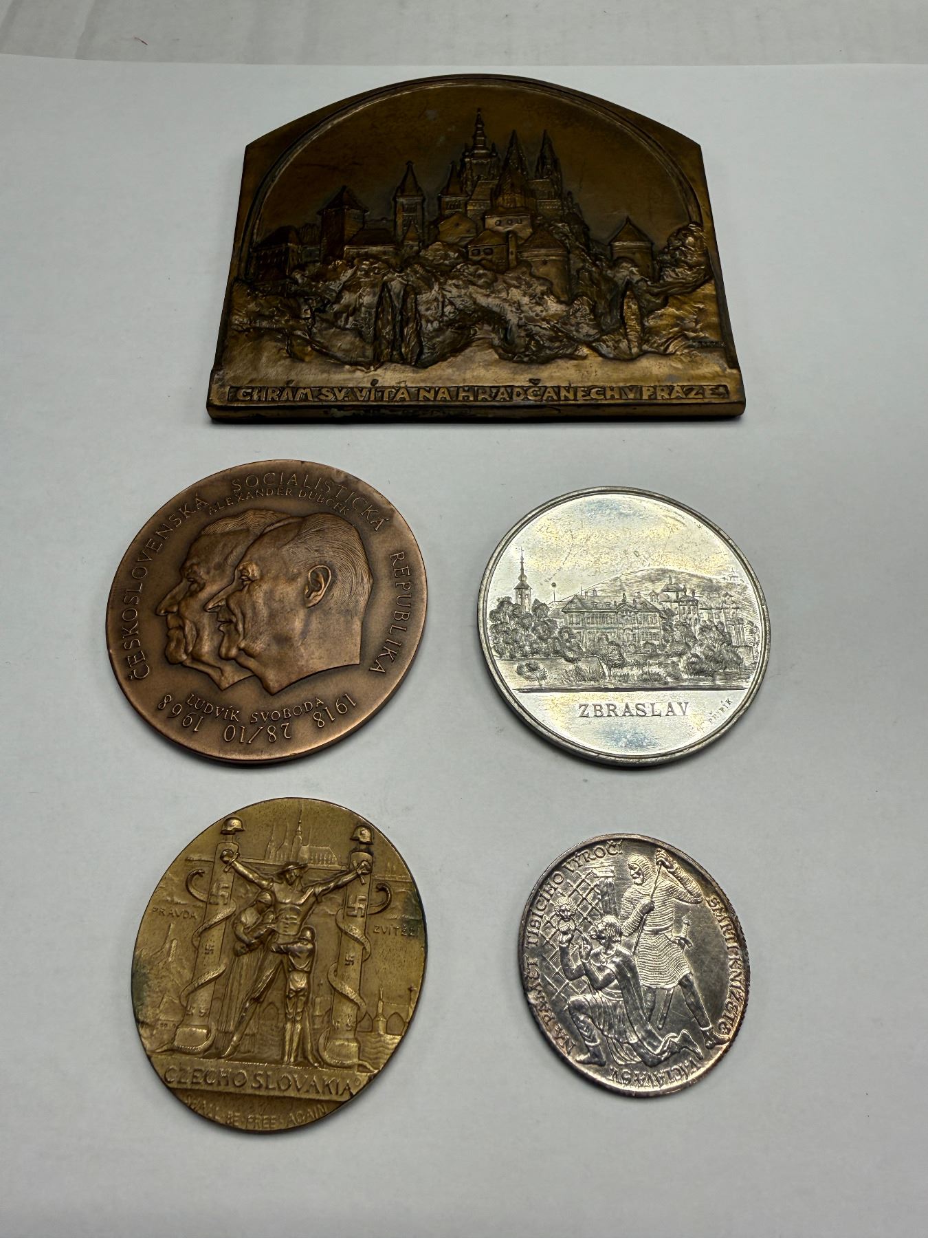 WORLDWIDE: LOT of 29 medals, including Argentina (4, 1907 AR Santa Fe shooting medalet, 1899 AE San Martin, 1906 AE General Los Heras and 1890 AE Puerto de la Plata), Austria (3, 1779 AE City Hall, "1602" AR Rudolf II Coronation restrike, and ND gilt AE Praise medal), Belgium (2, ND William King of Pays-Bas and 1832 AE Citadel of Antwerp), Brazil (1, 1922 AE Independence Centennial), Colombia (1, 1940 AE Santander in case), Czechoslovakia (5, [1929] 1000th Anniversary of Václavs' I Death, 1893 WM Bratislava, ND AE St. Vitas Cathedral plaque, 1968 AE Duchek and Svoboda, and 1939 AE We Shall be Free Again), France (3, ND AE Roi Krok plaque, ND AR History Society-Fish, and ND [1909] Brother and Sister plaque), German States/Württemberg (1, ND AE Karl Eugen Centennial), Great Britain (2, 1850 WM Jenny Lind and ND WM Jenny Lind), Hungary (1, 1932 AE Glykais Olympic Champion), Netherlands (3, 1604 AE Capture of Ostende jeton, 1898 AR Wilhelmina Inauguration, and ND AE Right and Freedom), Sweden (1, ND AE Dag Hammarskjöld), and United States (2, 1844 AE Alma Mater and 1850 AE Jenny Lind); average circulated grades, as well as a few uncs, in consignor's holders and case, viewing recommended; retail value $1050, lot of 29 medals.