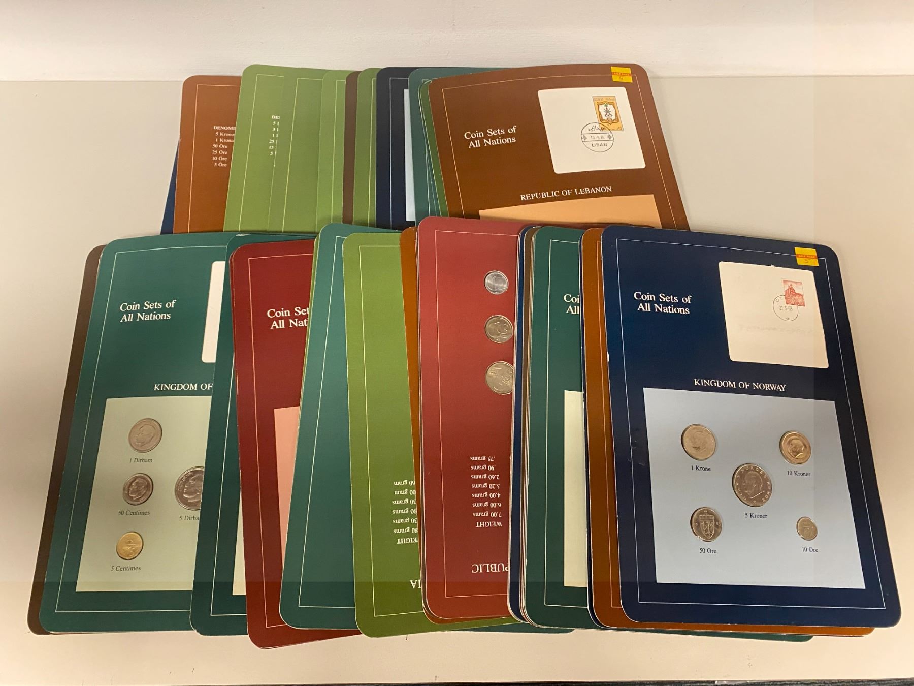 WORLDWIDE: LOT of 40 sets, including "Coin Sets of All Nations" sets, from various countries (no China), with little duplication, from different year sets, from dealer stock; retail value $400, lot of approximately 40 pieces.
