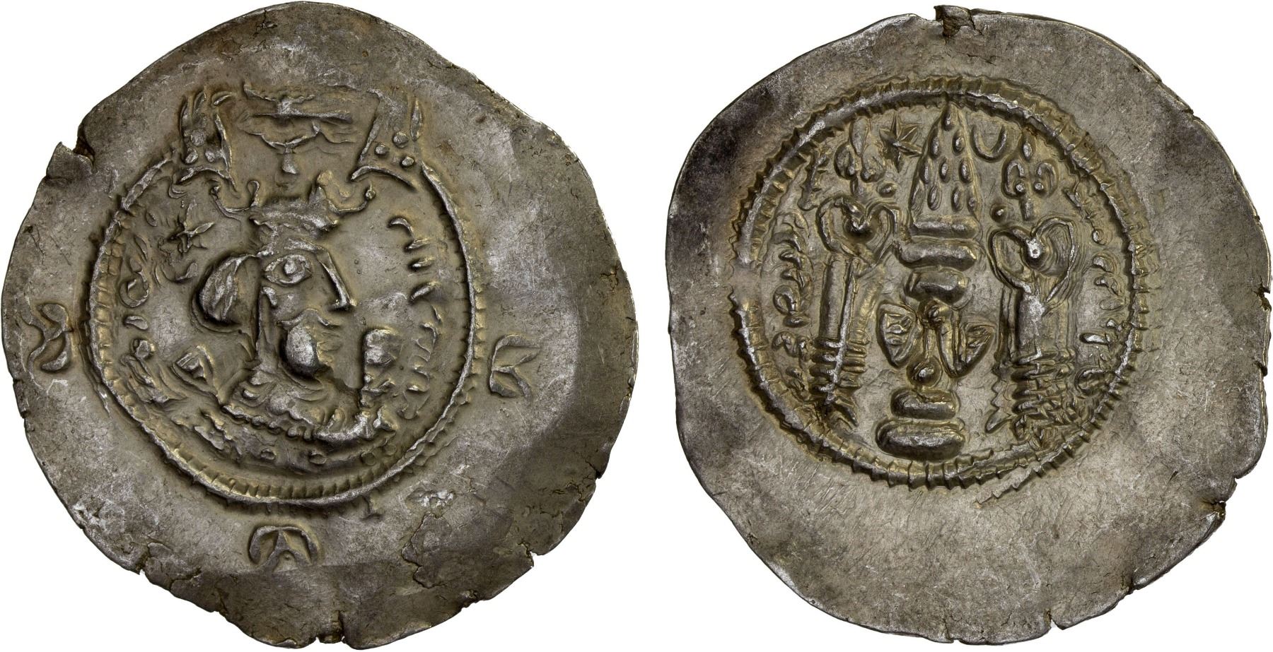 YABGHUS OF TOKHARISTAN: Anonymous, 7th century, AR drachm (4.22g), blundered date, XF
