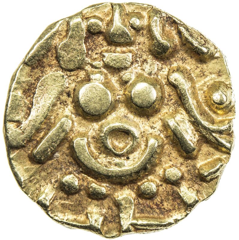 YADAVAS OF TRIBHUVANAGIRI: Kumara Pala, pre-1196, AV 4½ masha (4.13g), De-150, Lakshmi seated // Devanagari legend, narrow flan, EF.