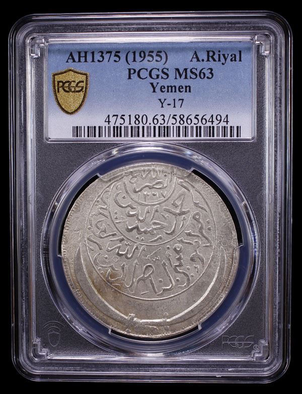 YEMEN: Ahmad bin Yahya, 1948-1962, AR ahmadi riyal, San'a, AH1375, PCGS MS63