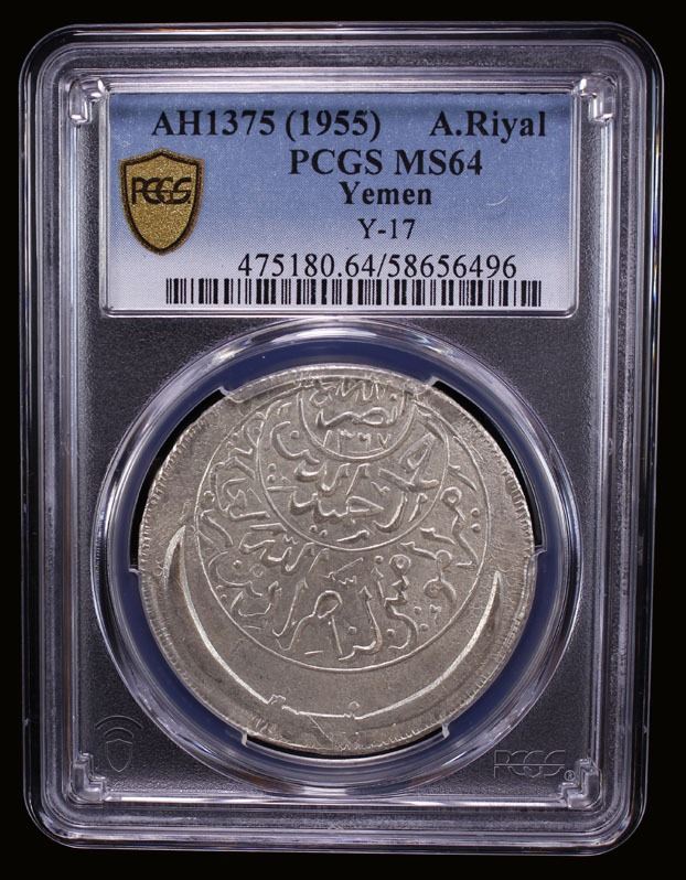 YEMEN: Ahmad bin Yahya, 1948-1962, AR ahmadi riyal, San'a, AH1375, PCGS MS64