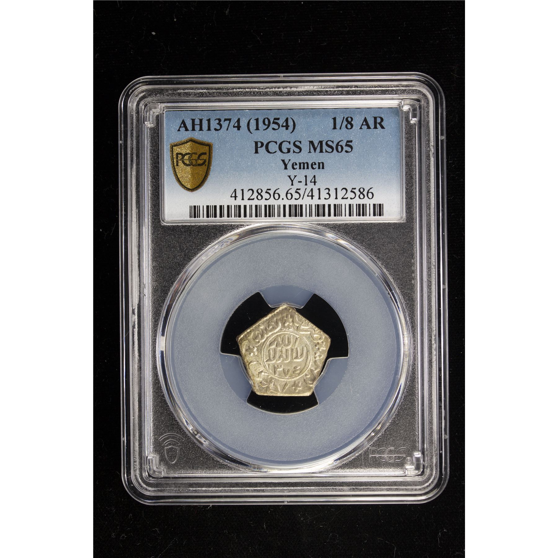 YEMEN: al-Nasir Ahmad bin Yahya, 1948-1962, AR 1/8 riyal, San'a, AH1374, Y-14, a superb quality example! PCGS graded MS65.