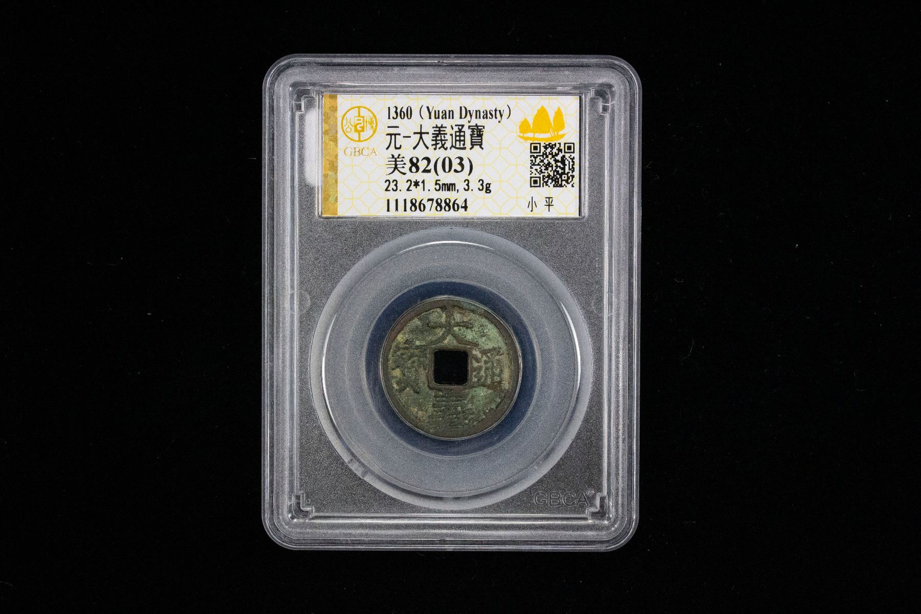 YUAN: Da Yi, Rebel, 1360-1361, AE cash (3.3g), H-19.145, graded 82(03) by GBCA Grading Company, repaired, VF, ex Dr. Dirk Löer Collection. Chen Youliang (Da Yi) was the founder of the insurgent state of Dahan in the late Yuan Dynasty period of Chinese history.